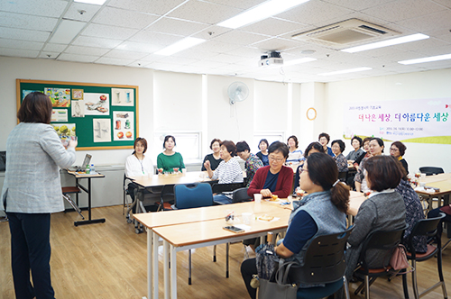 자원봉사자 기초교육 진행 작성일 : 2019.09.20 | 조회수 : 11474 일 시 : 2019. 09. 19(목) 10:00~12:00대 상 : 복지관 자원봉사자 24명장 소 : 3층 취미교실 복지관에서 활동하고 있는 자원봉사자를 대상으로 기초교육을 진행하였습니다. <더 나은 세상, 더 아름다운 세상>이라는 주제로봉사활동에서 발생하는 스트레스 완화법과 동료간의 관계형성에 대한 방법을 배우는 시간이었습니다.