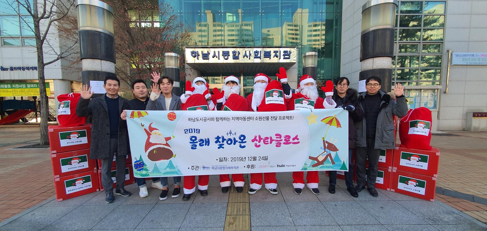 몰래 찾아온 산타클로스 작성일 : 2019.12.24 | 조회수 : 12613 하남도시공사의 후원으로 관내 지역아동센터 이용 아동·청소년 393명에게아동이 원하는 소원선물과 간식을 전달해주었습니다.아이들에게 행복한 추억을 선물해주신 하남도시공사에 감사드립니다^^