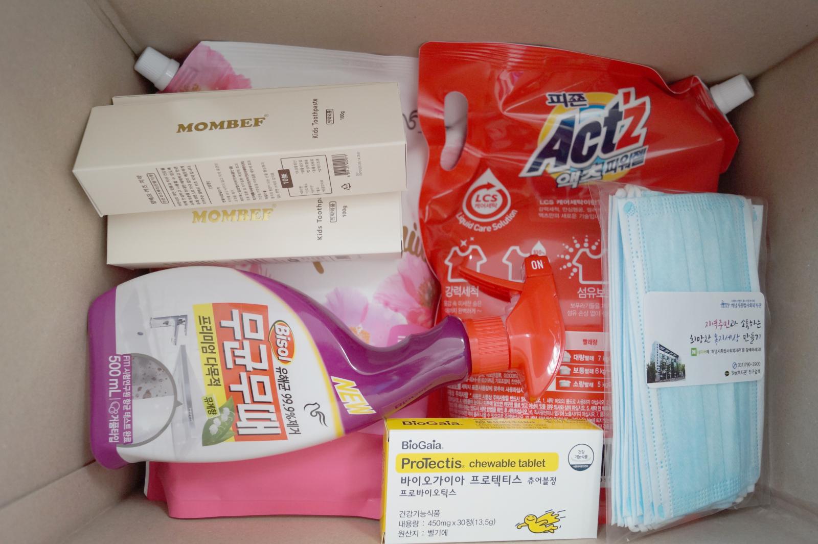 코로나19를 잘 이겨내라는 응원의 차원으로 생필품을 보내주었습니다.
