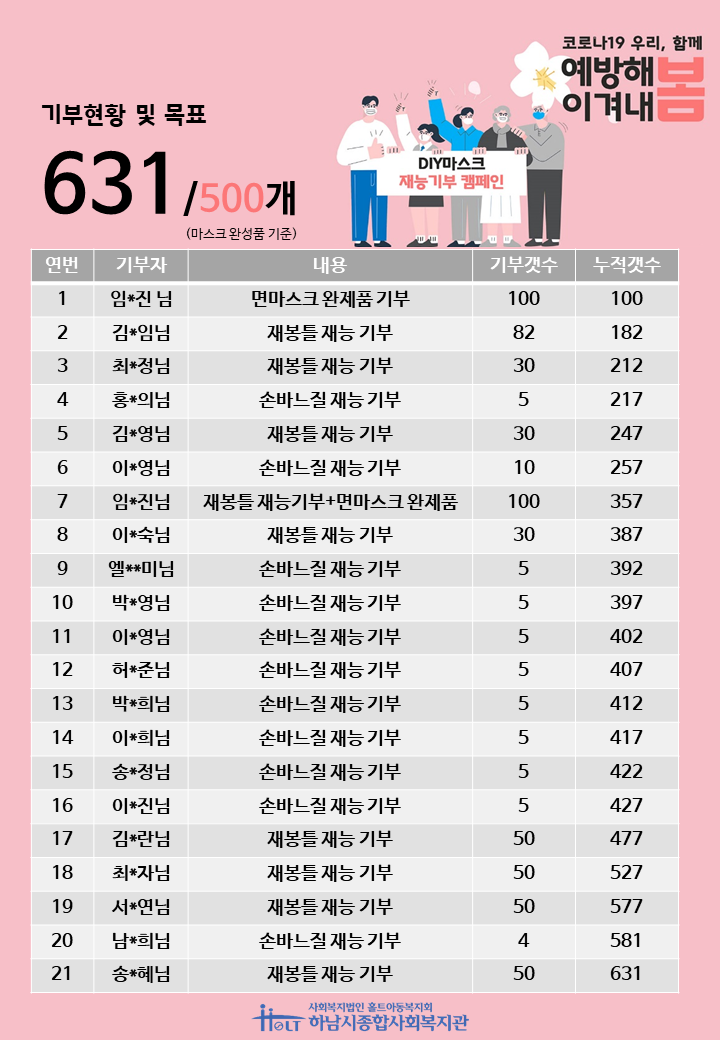 마스크DIY 재능기부 캠페인 결과