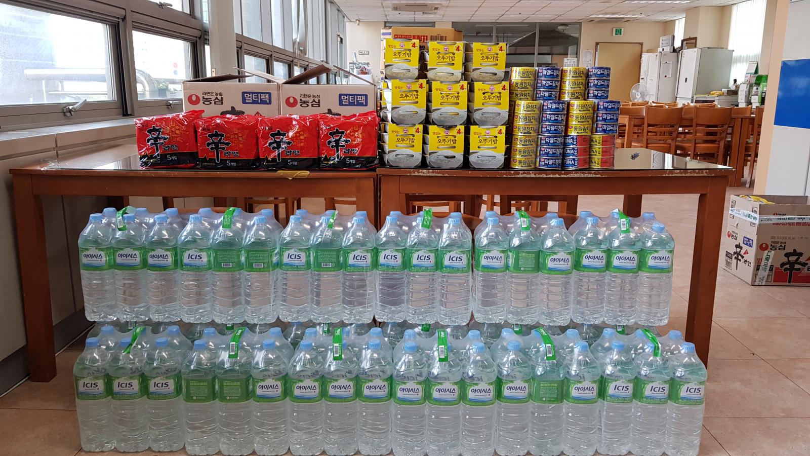 17시경 마트에서 라면, 햇반, 참치, 생수 등 다양한 식료품이 배달이 왔고