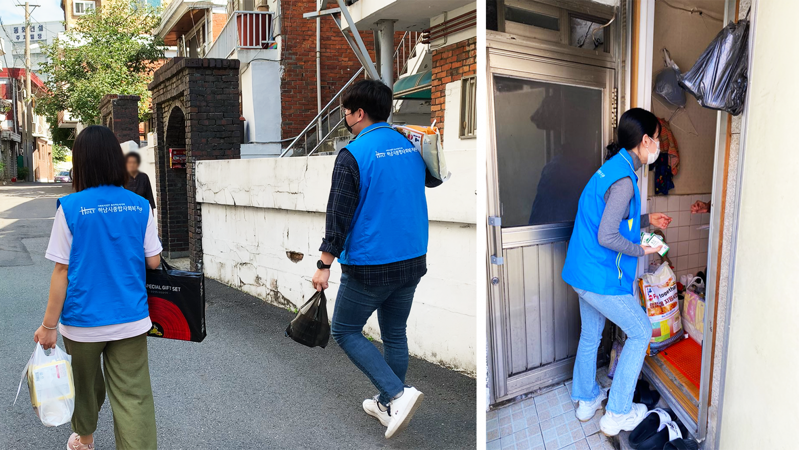 다양한 선물을 들고 가는 두 손은 무겁지만 어르신을 찾아뵙는 직원들의 발걸음은 가벼웠습니다