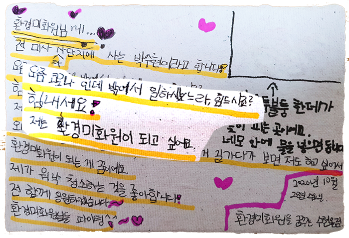 우리가 함께 환경이 깨끗해지도록 노력할 수 있는 방법에 대해 함께 이야기를 나누었습니다.