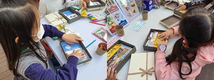 아이들이 쓴 편지와 간식, 손소독제, 마스크 등을 넣어 응원키트를 완성하였습니다!