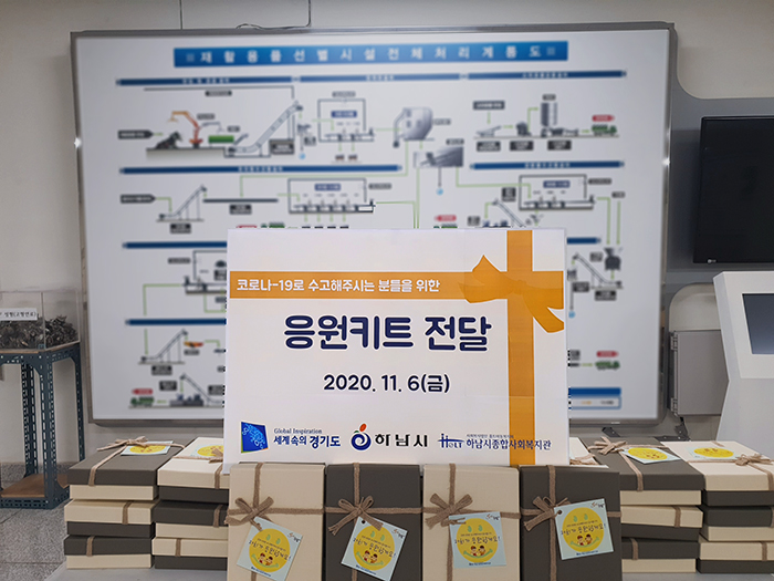 하남쓰레기 석환장에 방문하여 환경미화원분들에게도 응원키트를 전달하였는데요,
