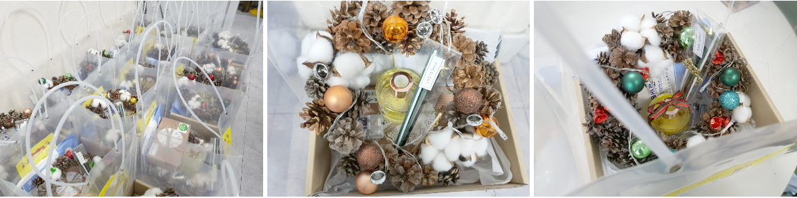 크리스마스 리스 디퓨저를 잘 담아왔고