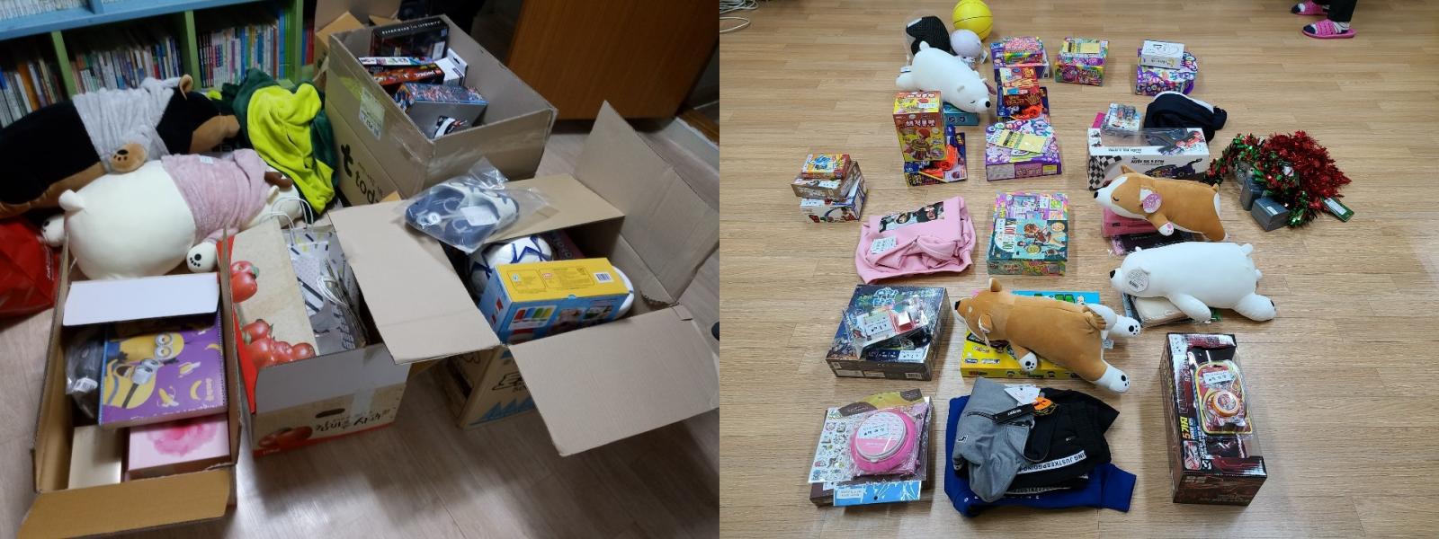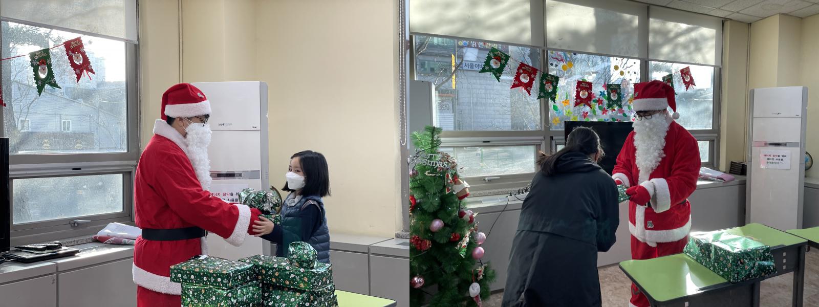 지역아동센터와 연계하여 아동들에게 1:1 전달 및 비대면(문 앞에 두는 방식)으로 선물을 전달했고