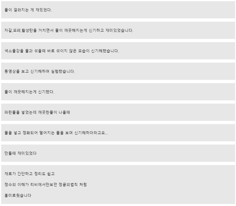 투명하고 깨끗하게 걸러지지 실험했어요!