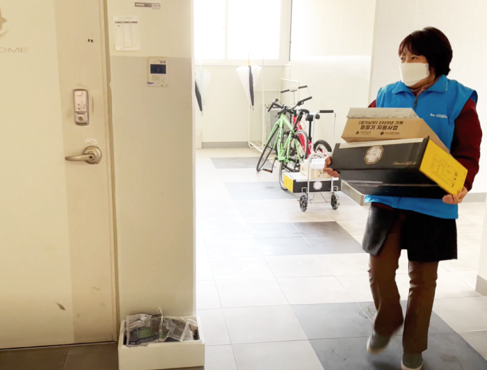 107가구에 모두 안전하게 전달하였습니다.