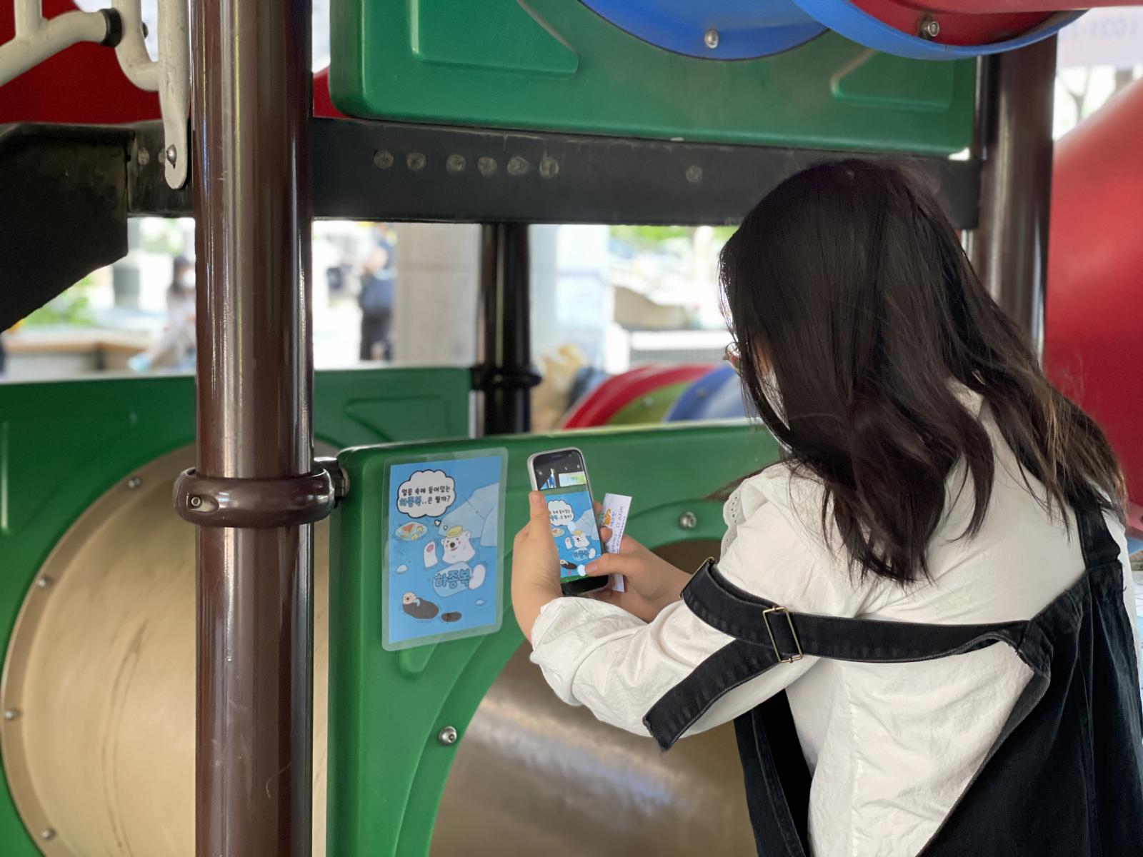 환경파괴로 힘들어하고 있는 북극곰을 한 번 더 생각해볼 수 있도록 놀이터에 꼭꼭 숨어있는 북극곰을 찾아보도록 해요~