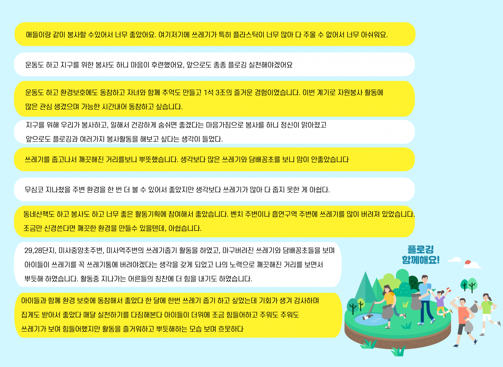 활동 후 참여자분들이 작성해준 후기에는