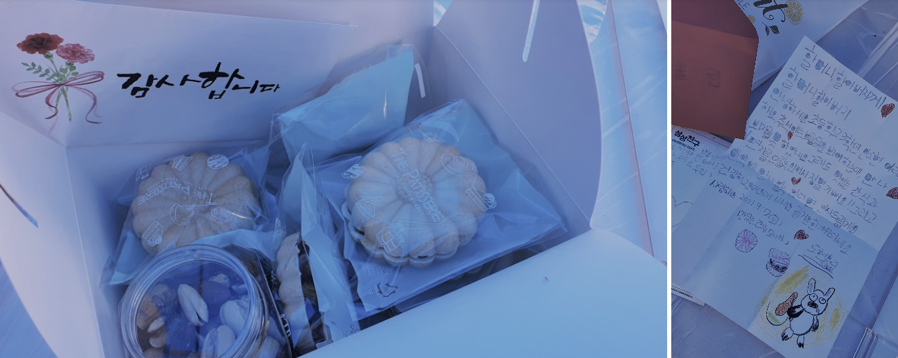 직접 작성해 온 편지, 건강을 위한 견과류와 함께 담았어요