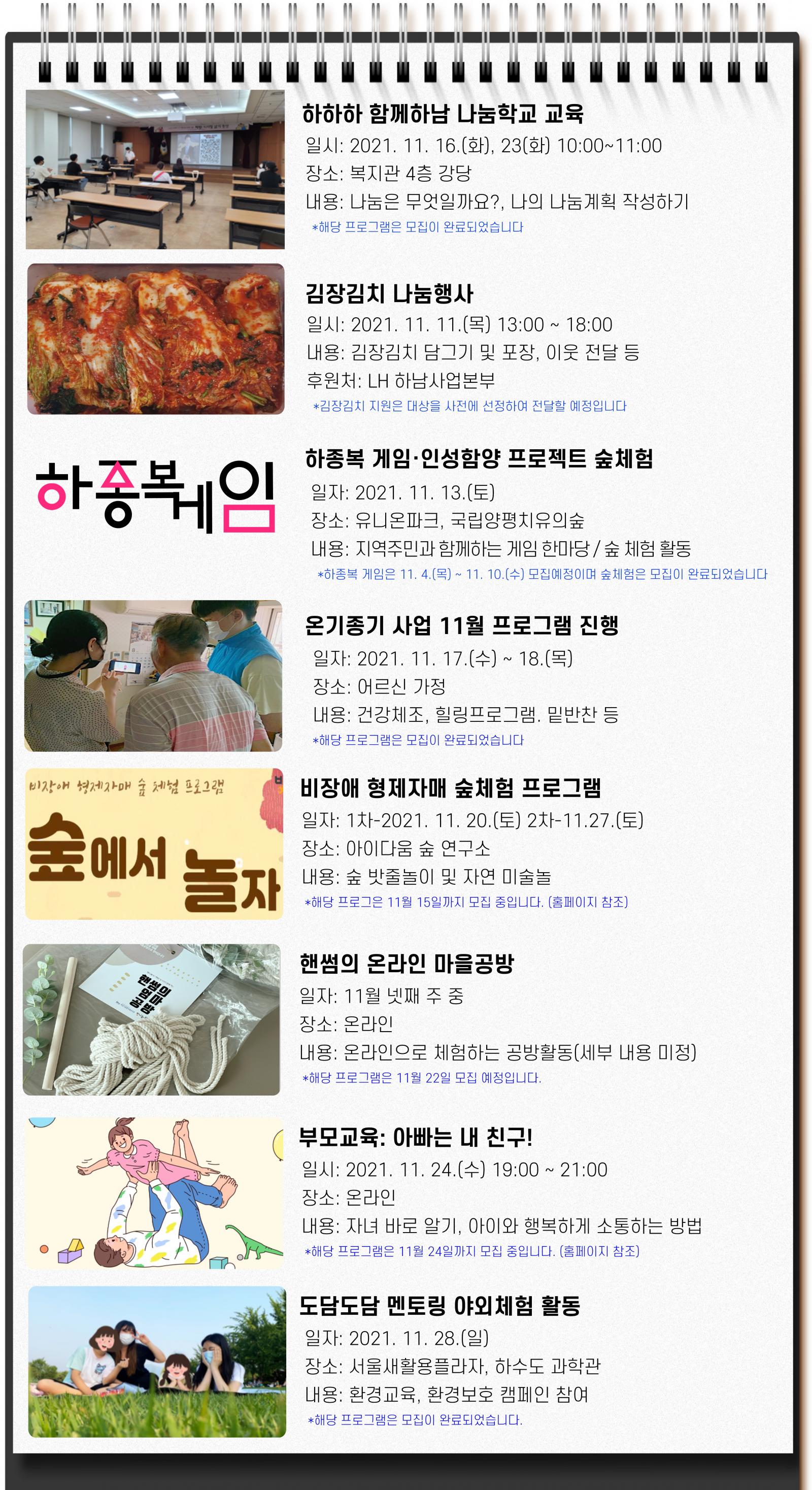 '하종복 게임' 참여자 모집 최종 명단 2021-11-09 조회수 9,150 하남시종합사회복지관 10월 월간소식 2021-11-03 조회수 8,743 2021 공정무역 한마당 2021-11-01 조회수 10,015 서울서문교회와 업무협약(MOU) 체결 2021-10-27 조회수 10,247 체험! 디지털 삶의 현장 활동 시작 2021-10-26 조회수 9,462 ‘세이브 아프간 위민' 챌린지 2021-10-15 조회수 9,514 2021년 한글날 기념 행사 진행(캘리,오프라인 우수작품 전시회) 2021-10-08 조회수 8,265 2021년 온라인 우수작품 전시회 2021-10-05 조회수 10,595 하남시종합사회복지관 9월 월간소식 2021-09-30 조회수 9,477