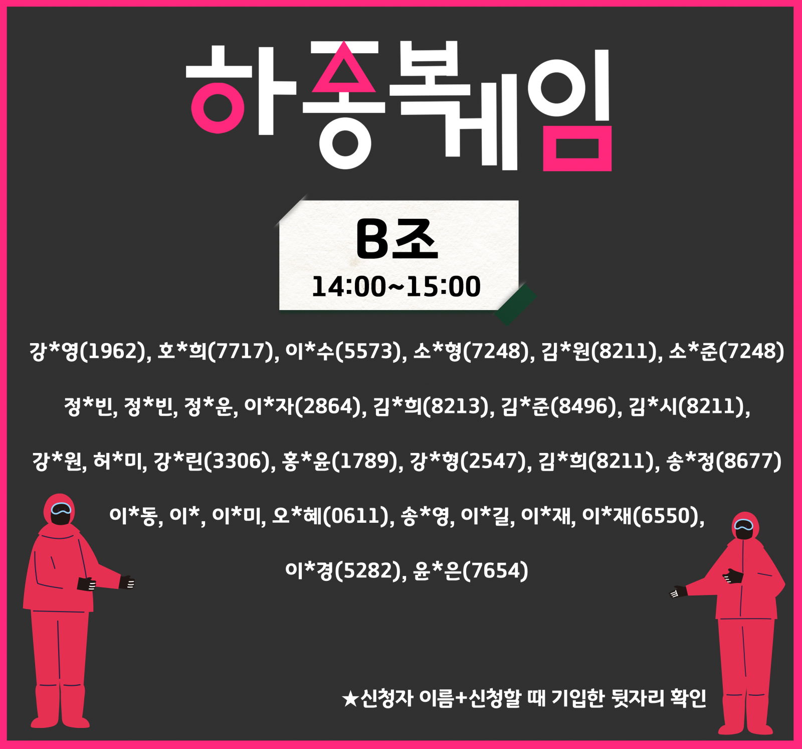 '하종복 게임'에 참가하시게 된 여러분을 환영합니다 ! ^^