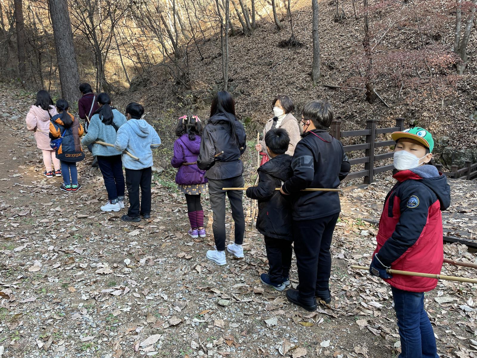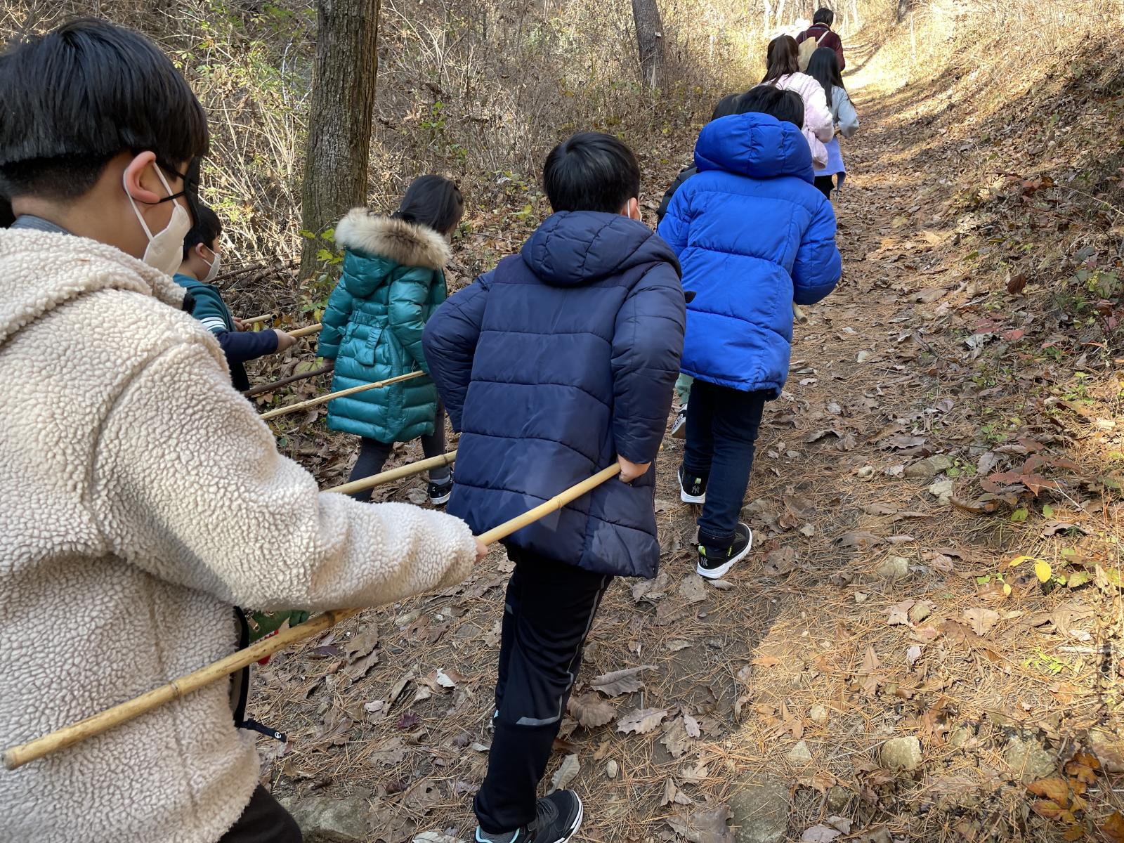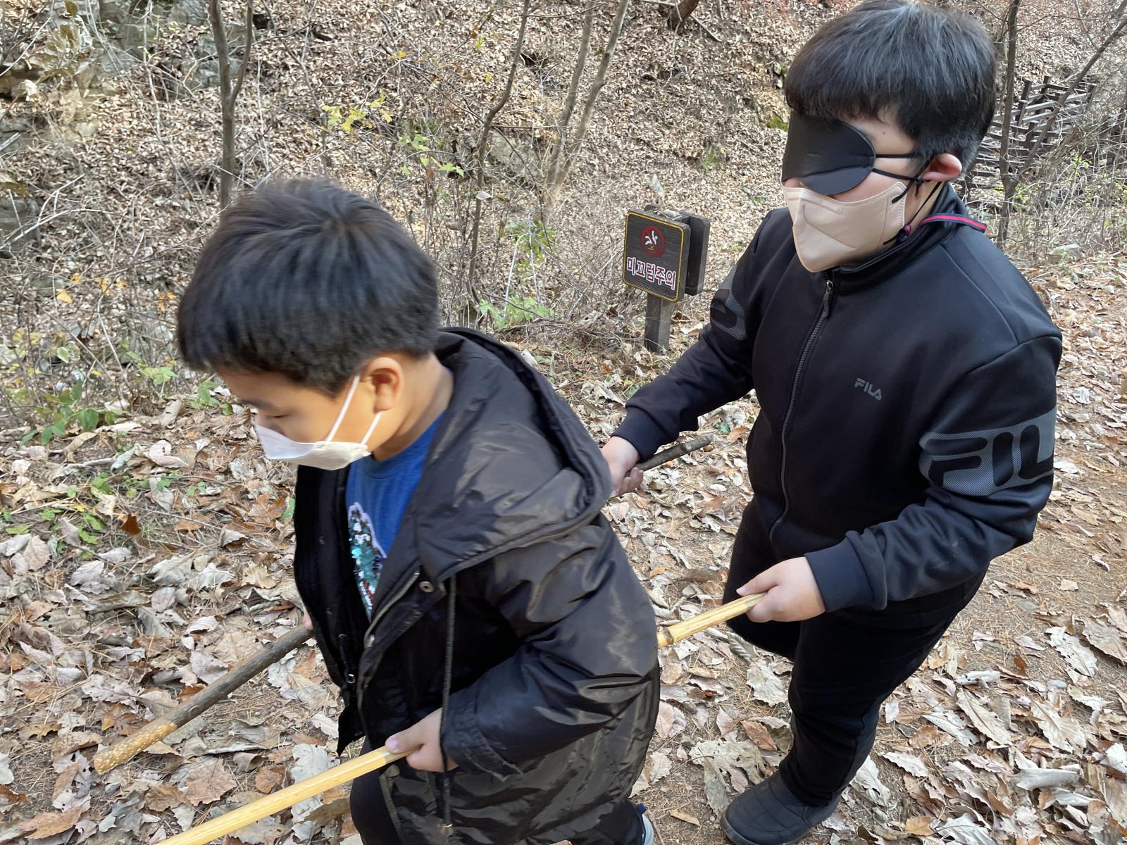 첫번째 활동은 바로! "눈 감고 산길 오르기!"