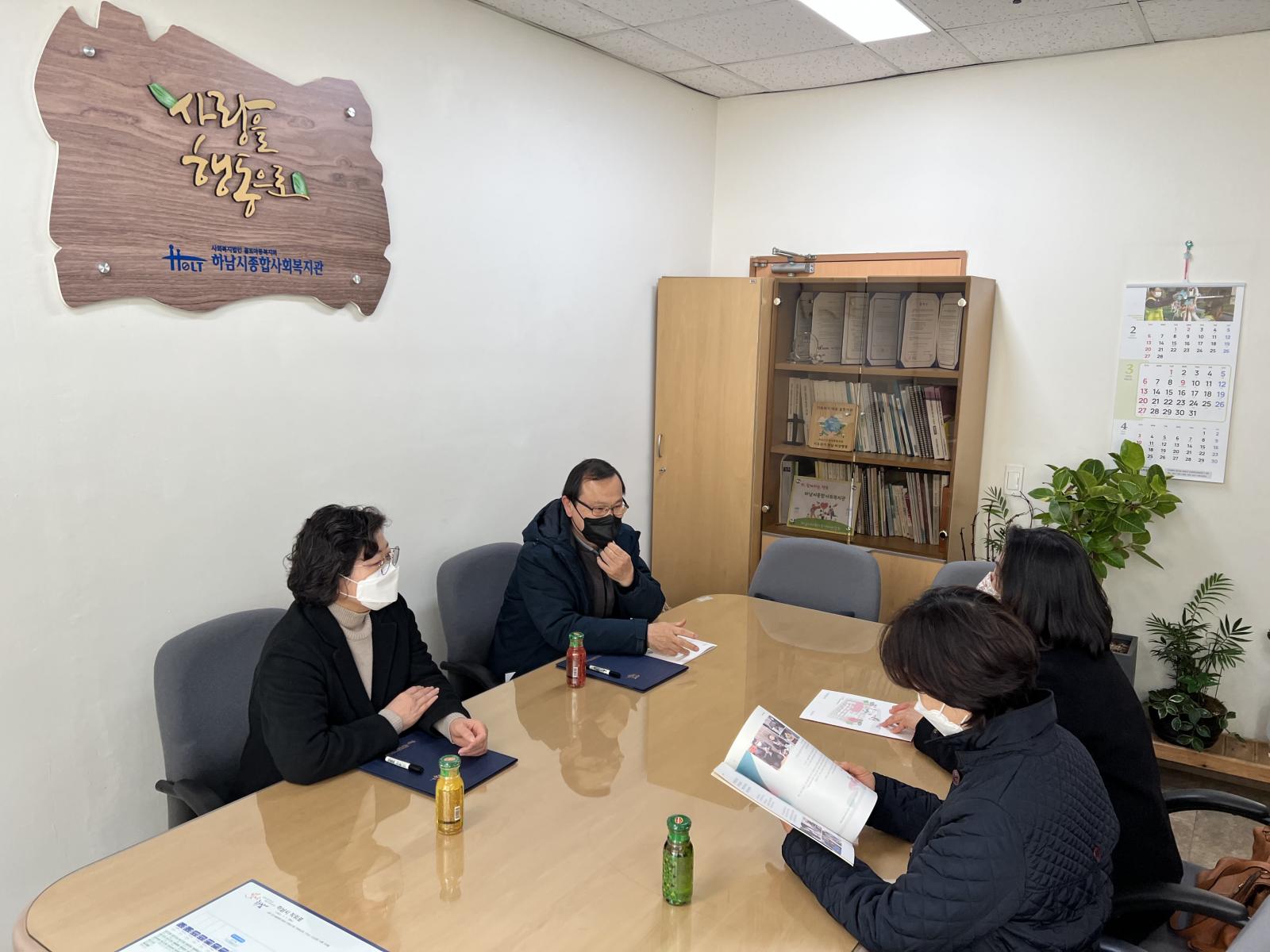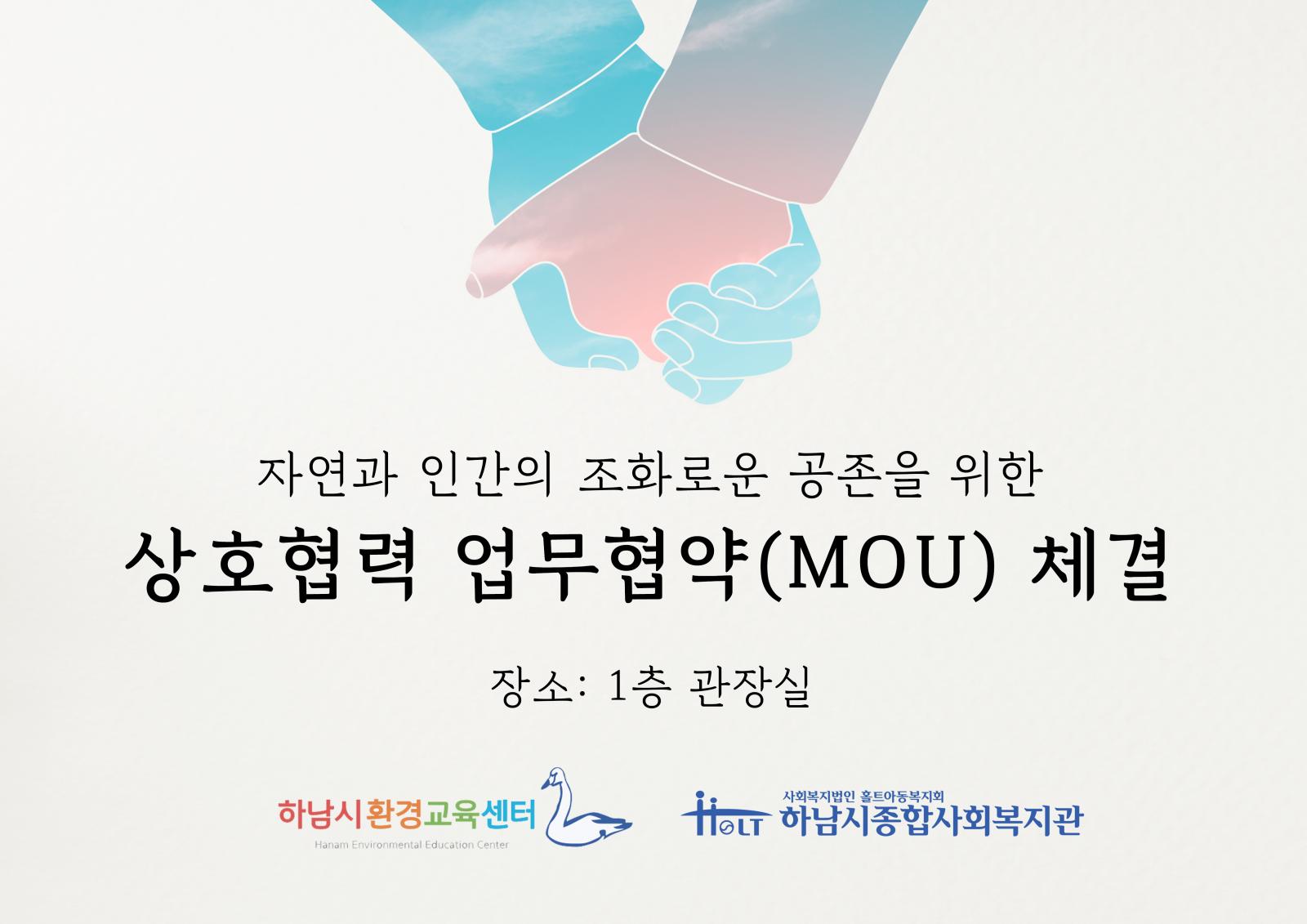 하남시환경교육센터와 업무협약(MOU) 체결 작성일 : 2021.12.15 | 조회수 : 8107 2021년 12월 15일(수)하남시종합사회복지관은 하남시환경교육센터와자연과 인간의 조화로운 공존을 위한 상호협력 업무협약을 맺었습니다.협약내용을 바탕으로 하남시민을 위한 환경교육에 힘쓰고 공동의 프로그램을 함께 진행하며지속가능 하남을 위해 함께 도약하겠습니다감사합니다.