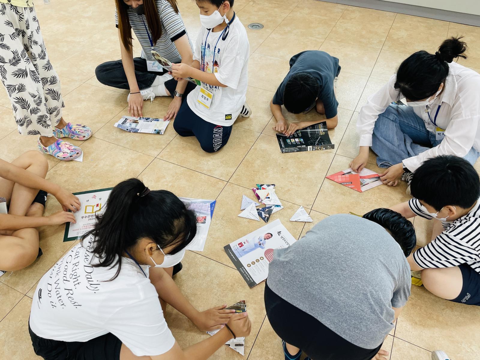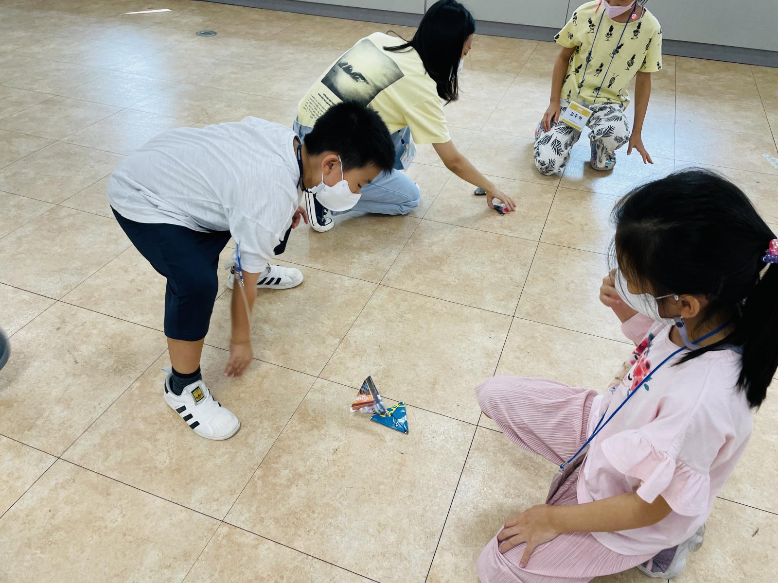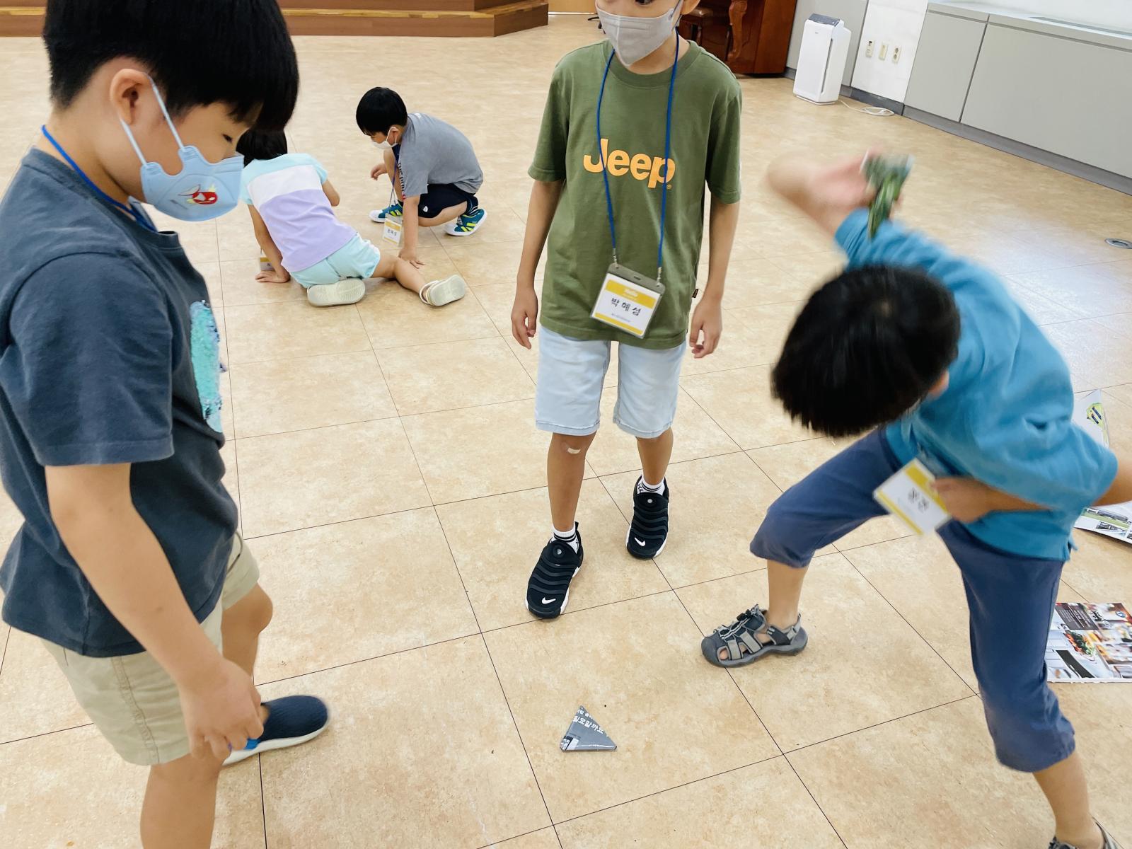 아이들이 딱지를 스스로 접고,