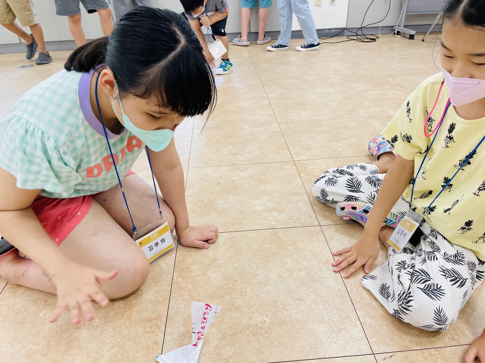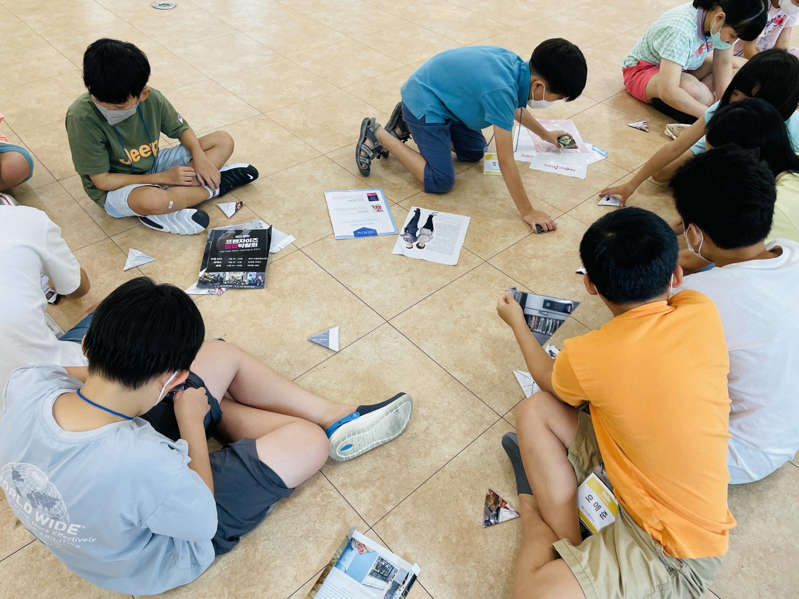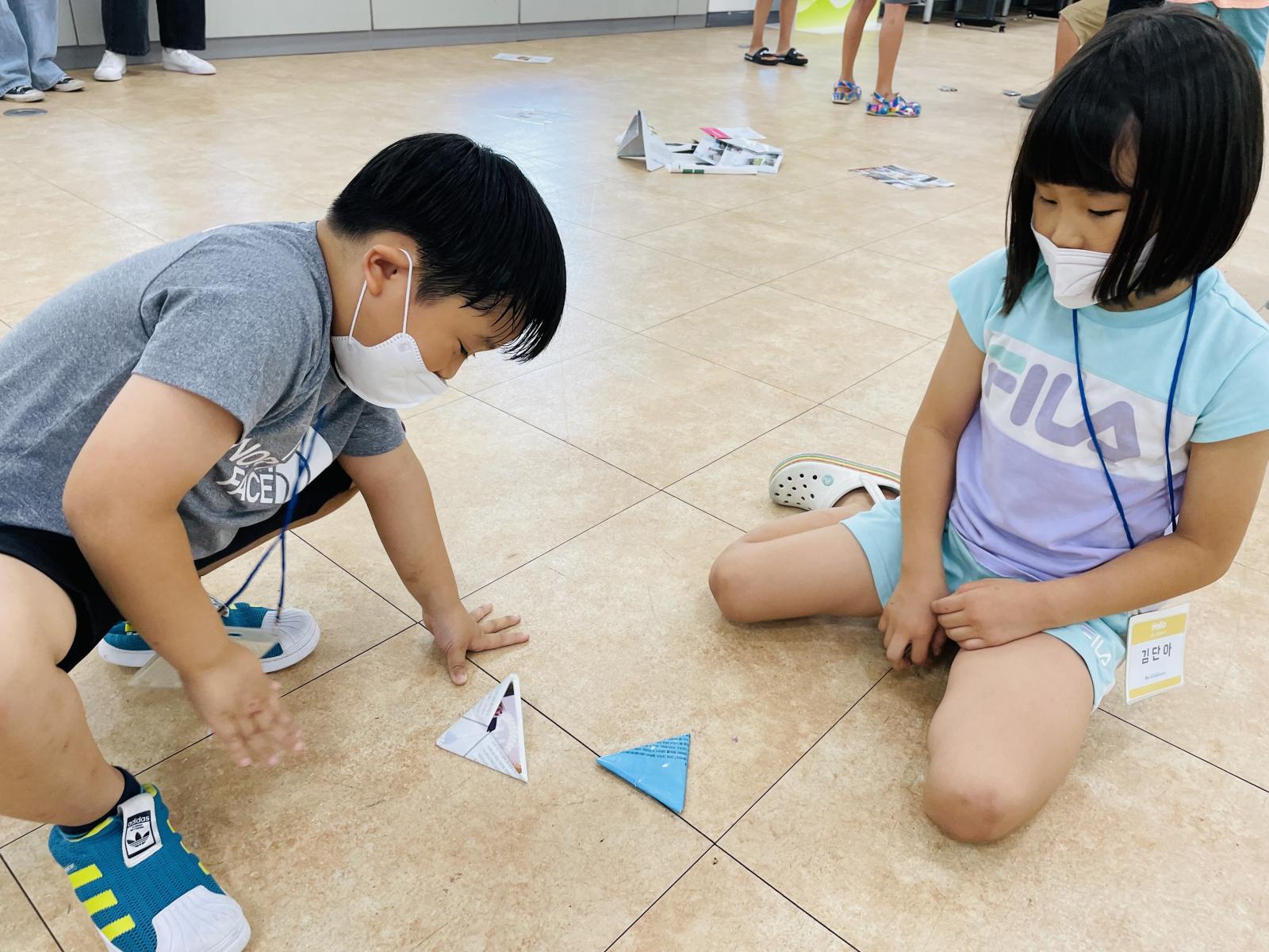 아이들이 딱지를 스스로 접고,