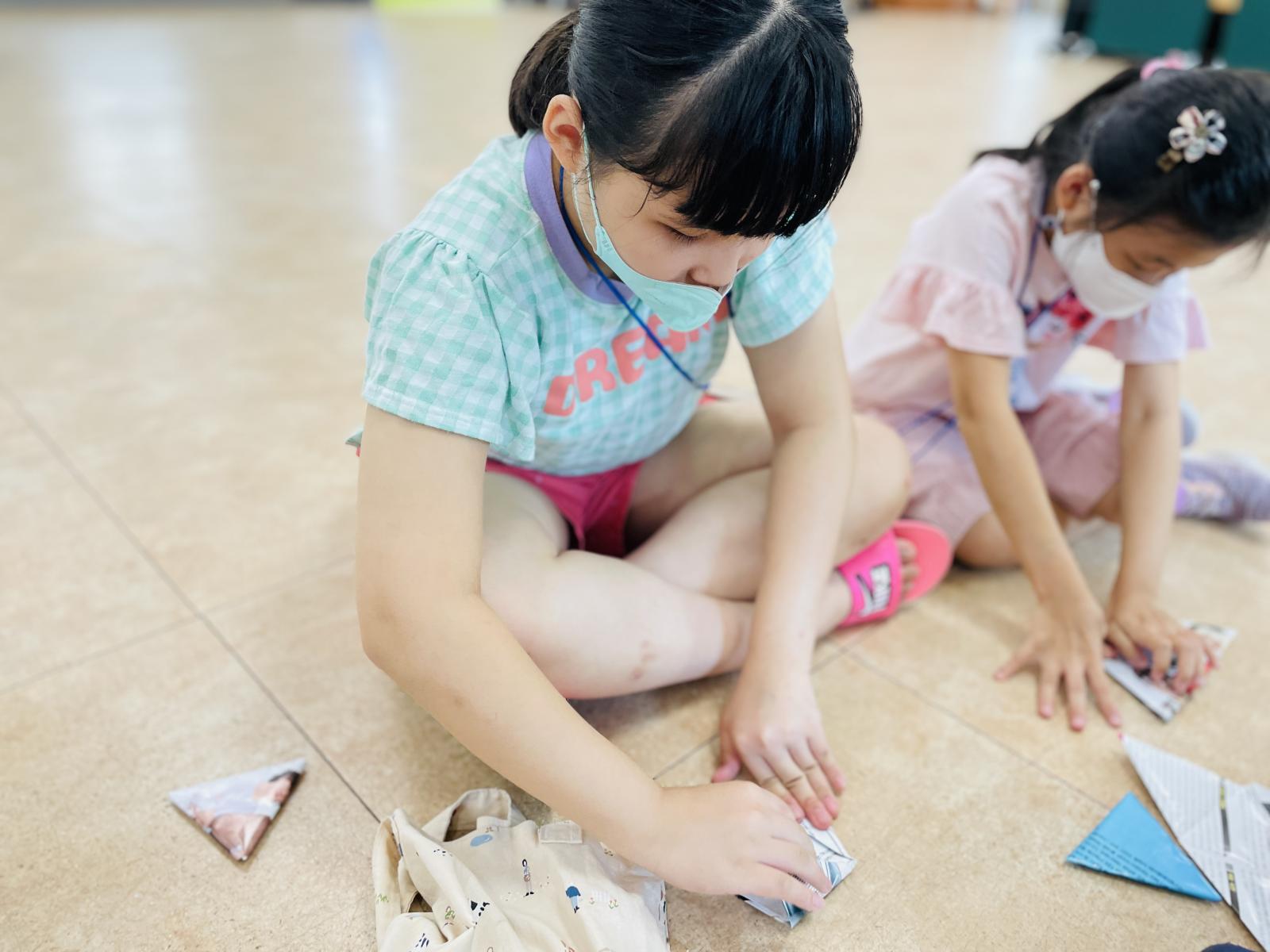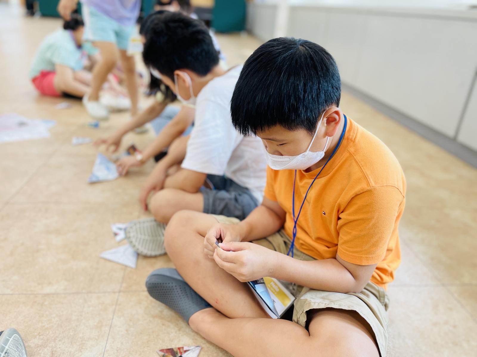 옆 친구를 도와주고 관찰하며 딱지를 완성했어요~