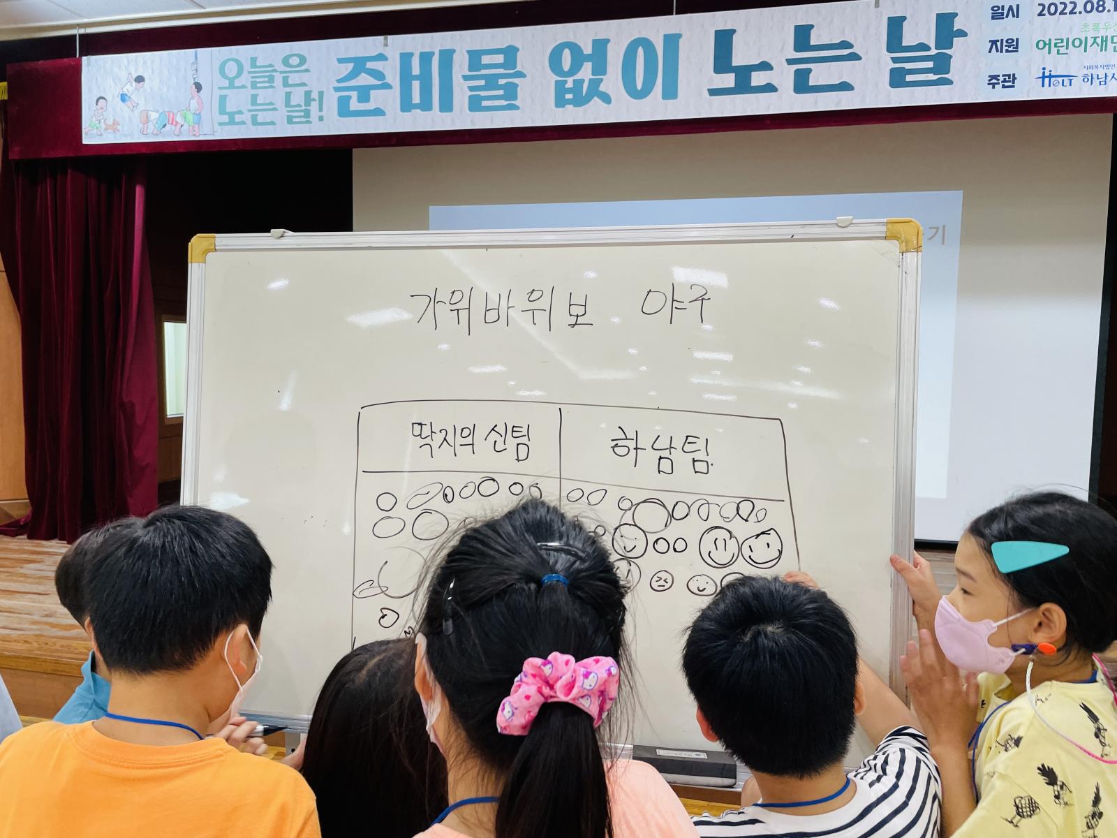 서둘러 딱지경기를 마무리하고 가위바위보 야구 놀이 설명을 듣기위해