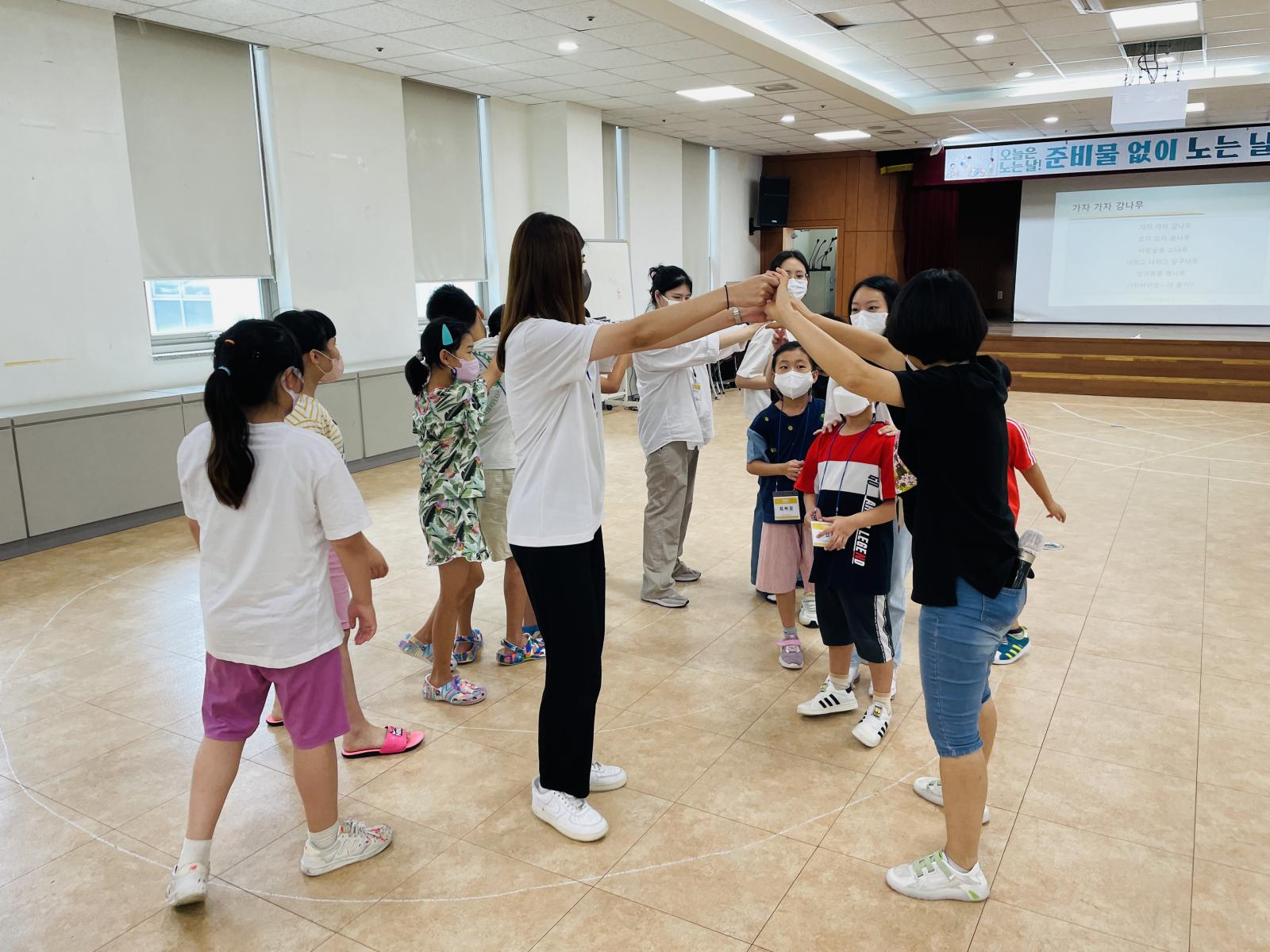 두 팀으로 나누어서 나란히 마주보고 손을 잡고 서요~