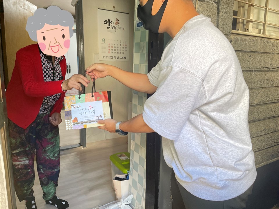 집에 계시지 않는 어르신들께는 비대면으로 전달드리기도 했어요~