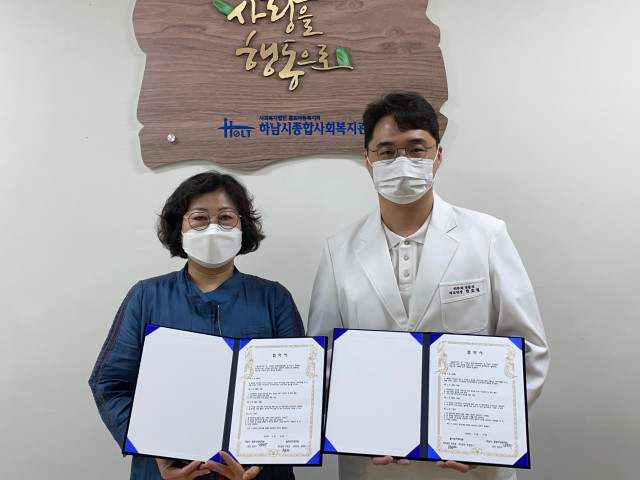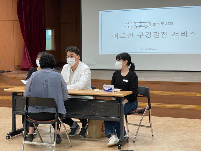 올바로치과의원 상호협력 및 어르신 구강검진 진행 작성일 : 2022.09.14 | 조회수 : 7147 하남시종합사회복지관과 올바로치과의원이 지역주민의 치아건강증진을 위해 8월 31일 상호협력을 맺었습니다.협약을 마친 후 한호철 대표원장과 임직원이 30여 명의 어르신을 만나 기초구강점검과 치아관리 교육, 의료서비스 연계 등의 무료검진 서비스를 제공했습니다.지역주민들의 건강한 치아를 위해 앞장서 나눔을 실천하는 올바로치과의원에 감사의 말씀을 드립니다.