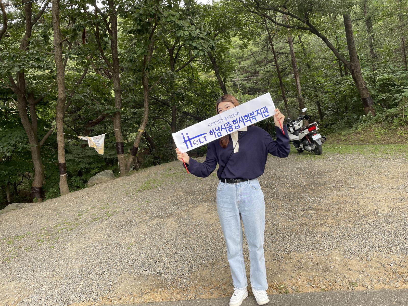 현충탑 입구에서 아이들이 길을 잘 찾아올 수 있도록 만반의 준비를 했답니다!