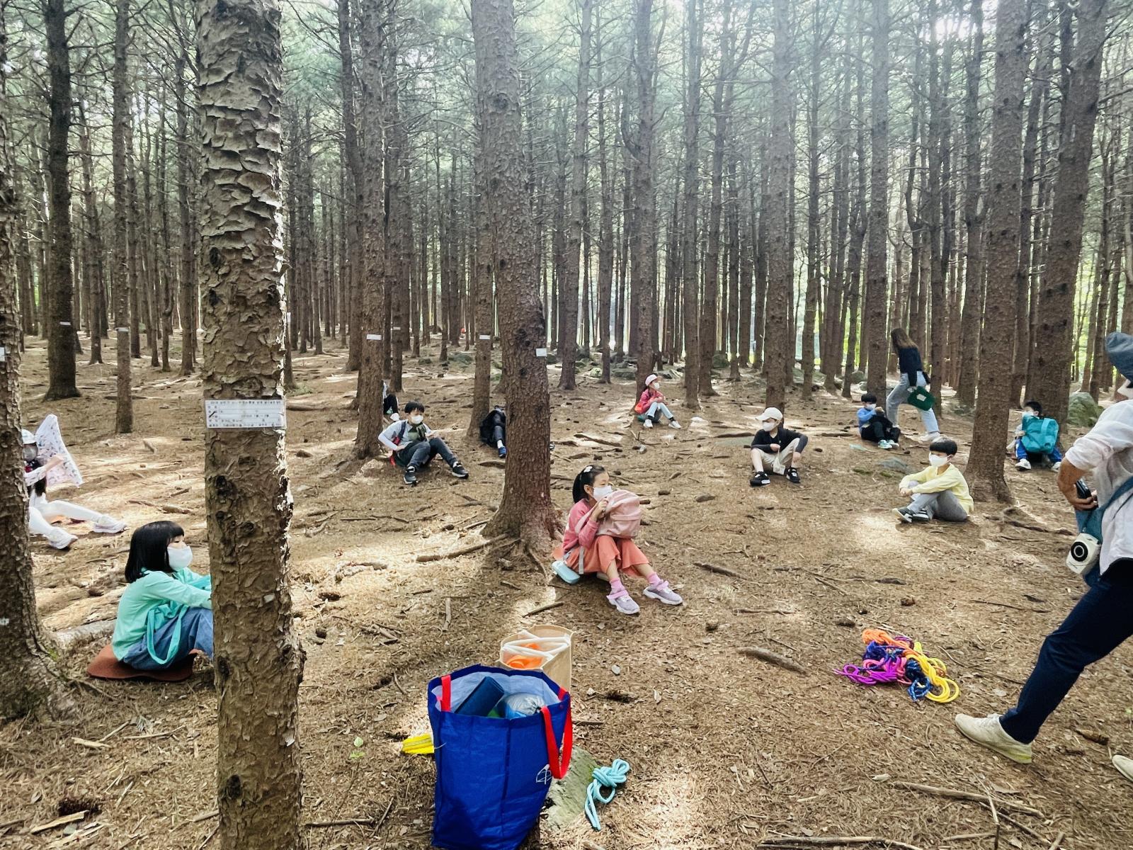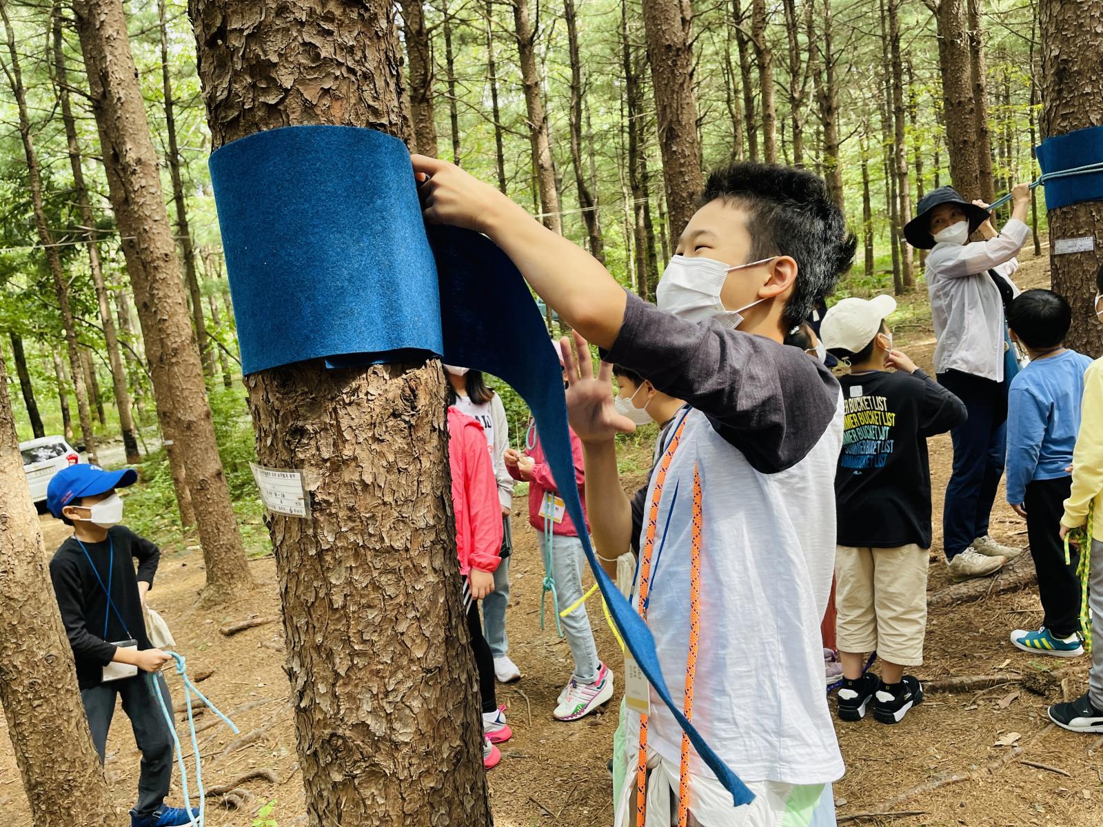 아이들 한 명당 한 그루의 나무를 정하여 자리에 앉았어요.