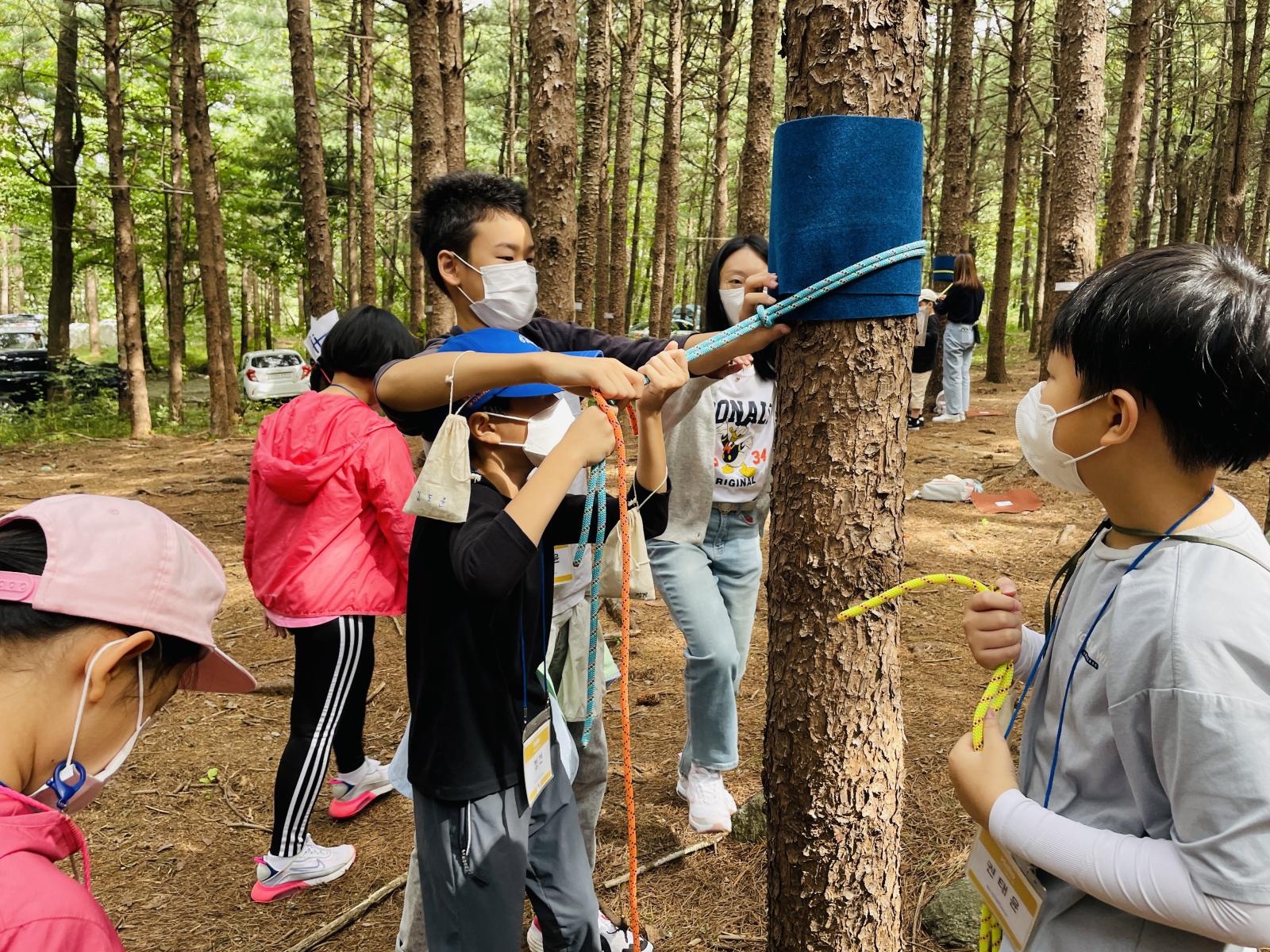 밧줄로 8자 매듭을 묶는 방법을 배웠어요!