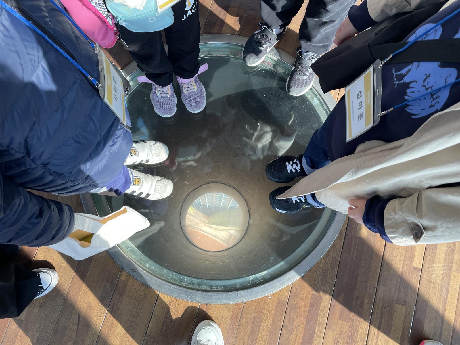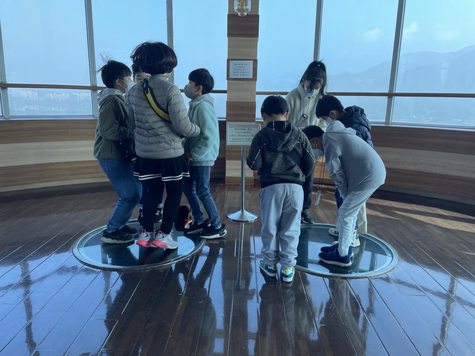 1층까지 뚫려있는 유리판 위에서 우리가 얼마나 높은 곳에