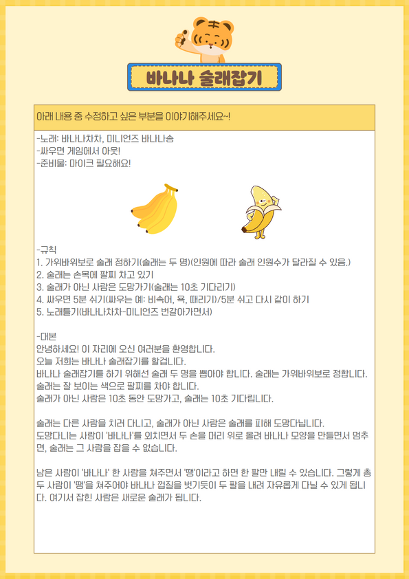열심히 바나나 술래잡기를 하고 난 후에 다음 게임으로 넘어갔어요!