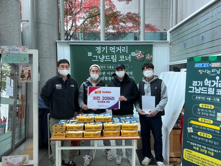 BBQ하남망월점 후원물품 전달 작성일 : 2022.11.03 | 조회수 : 6355 금일 BBQ치킨 하남망월점에서 지난달에 이어 치킨 20마리를 후원해주셨습니다.금번에는 치킨을 직접 소분하여 지역사회 어르신들께 후원해주신사장님들의 따뜻한 마음을 담아 모두 전달하였습니다. 감사합니다.