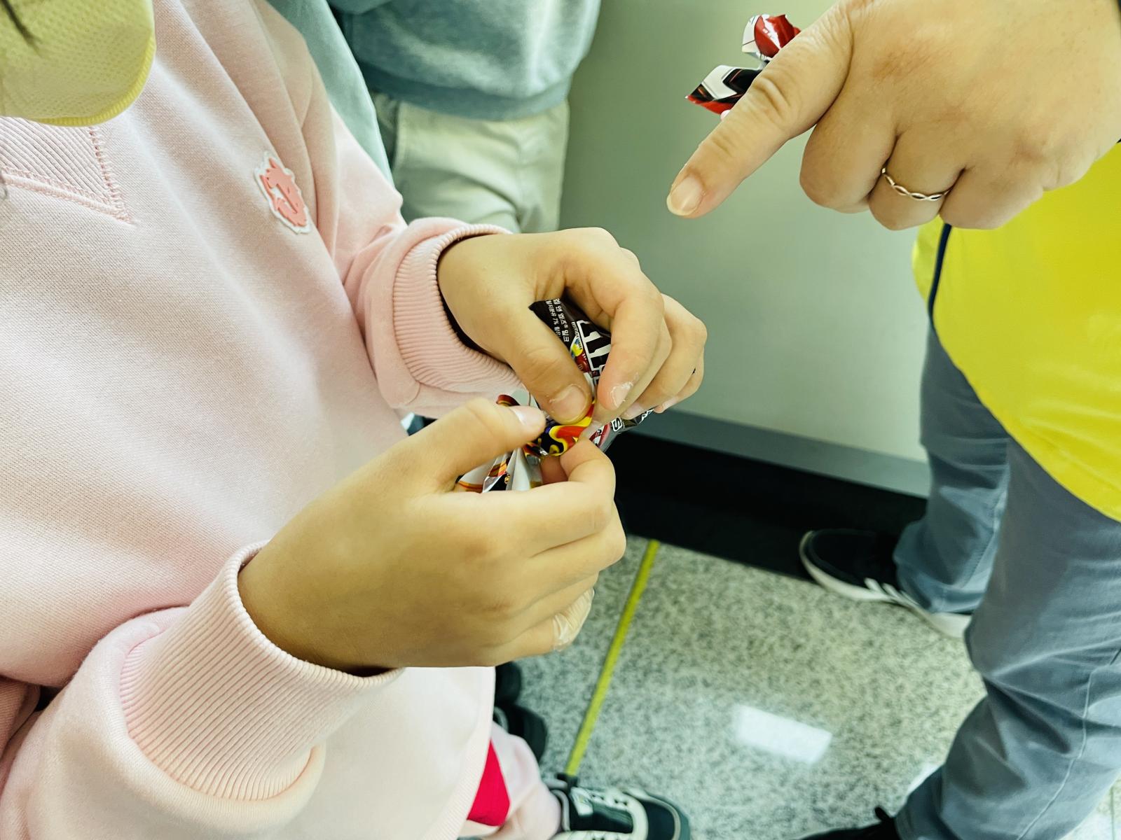 과자봉지로 만든 나비를 관찰하고 어떤 과자봉투인지도 알아맞혀보았어요!
