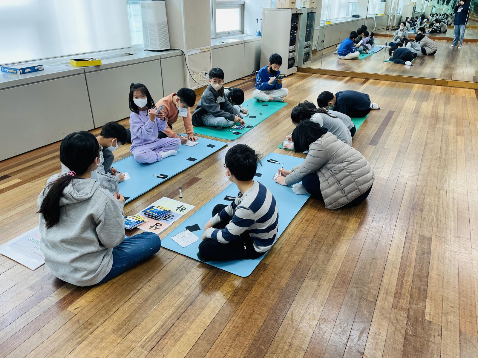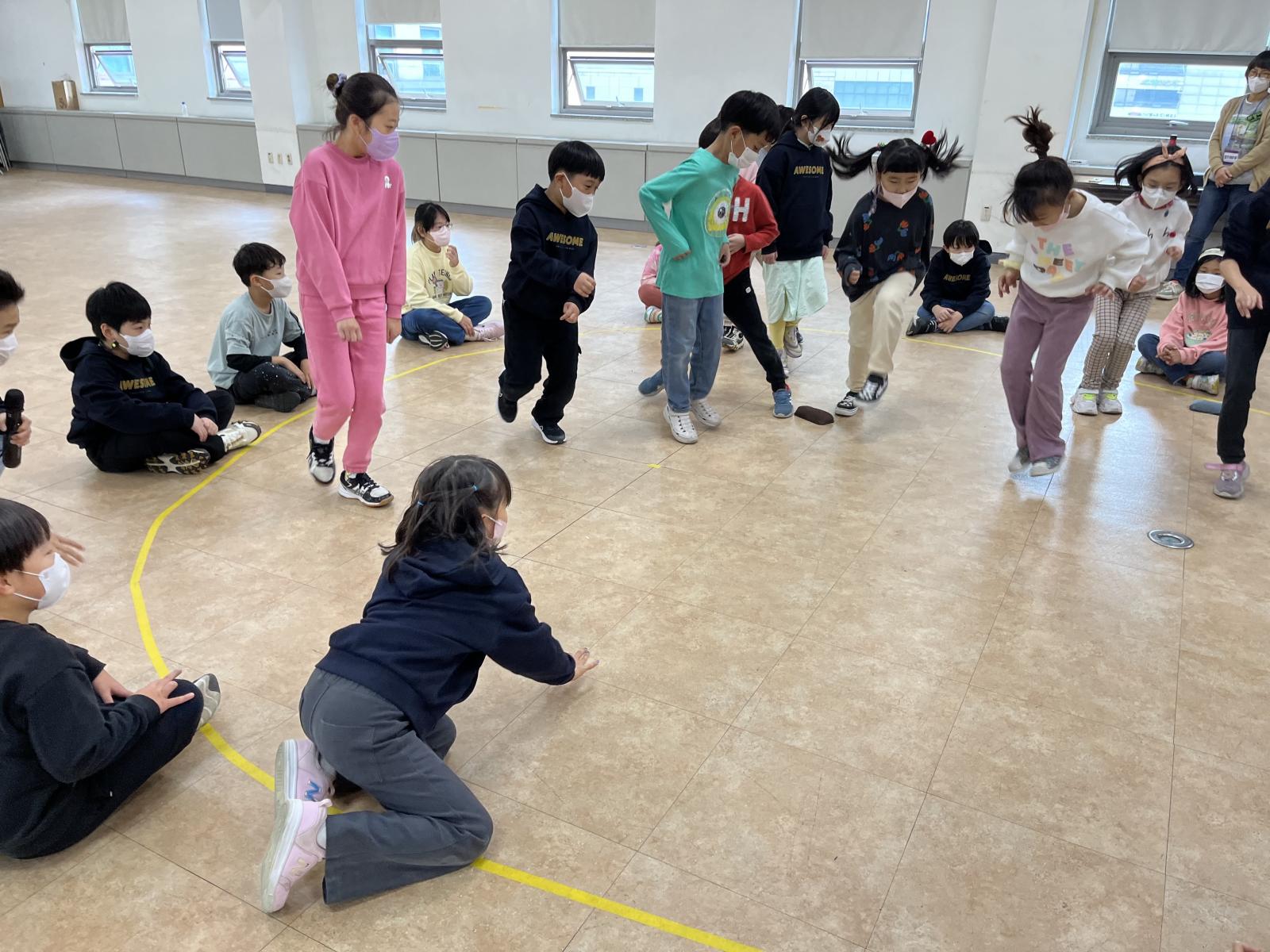 이번 게임은 바닥에 다같이 옹기종기 모여 앉아서 즐기는 놀이인가봐요!