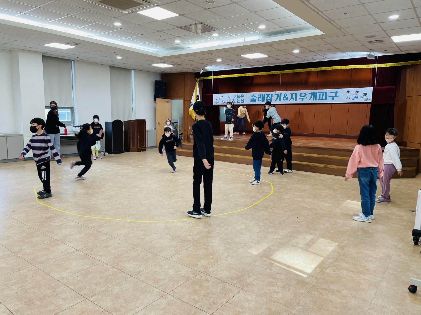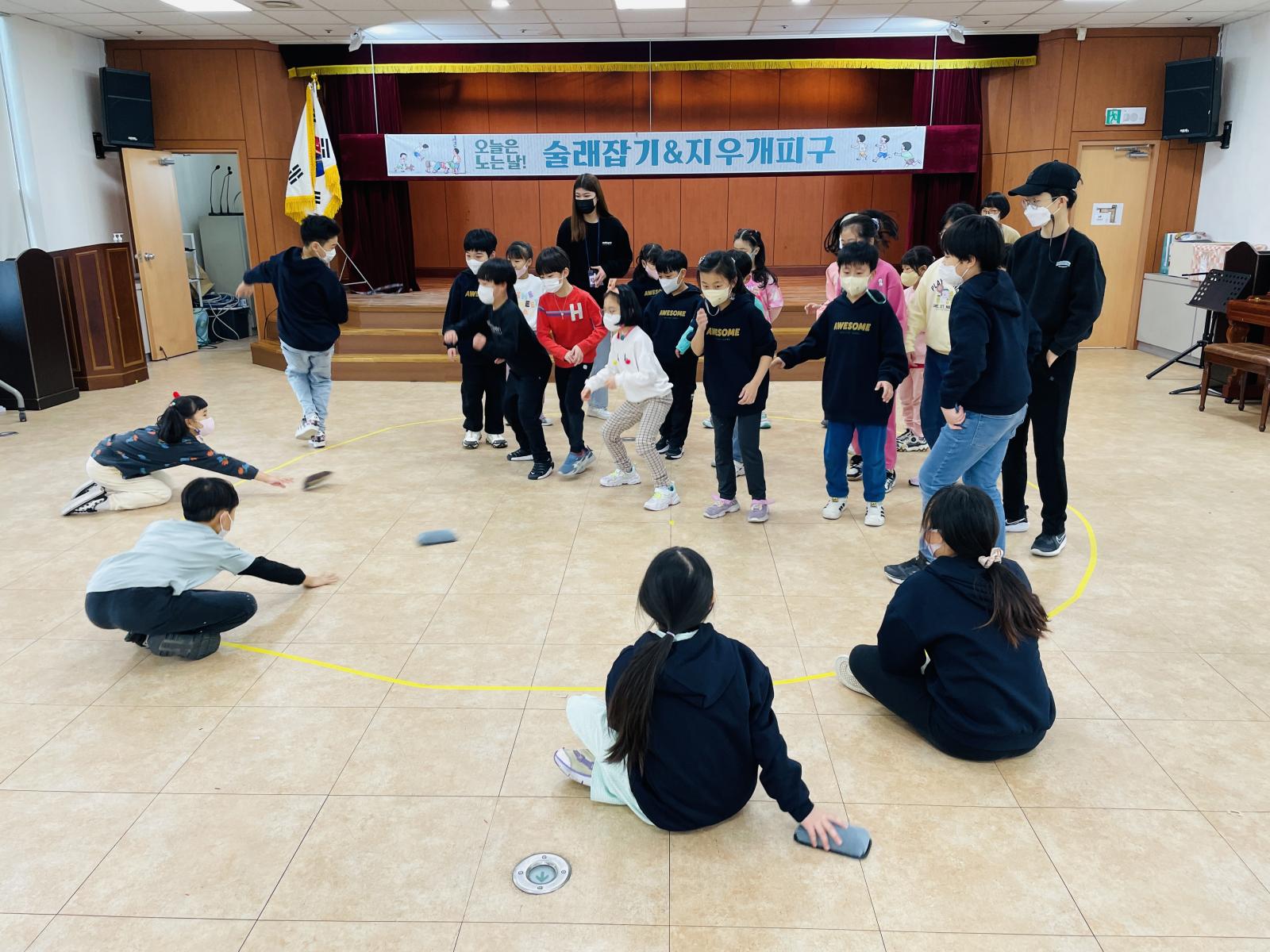 이번 놀이는 술래잡기와 지우개 피구인데요!