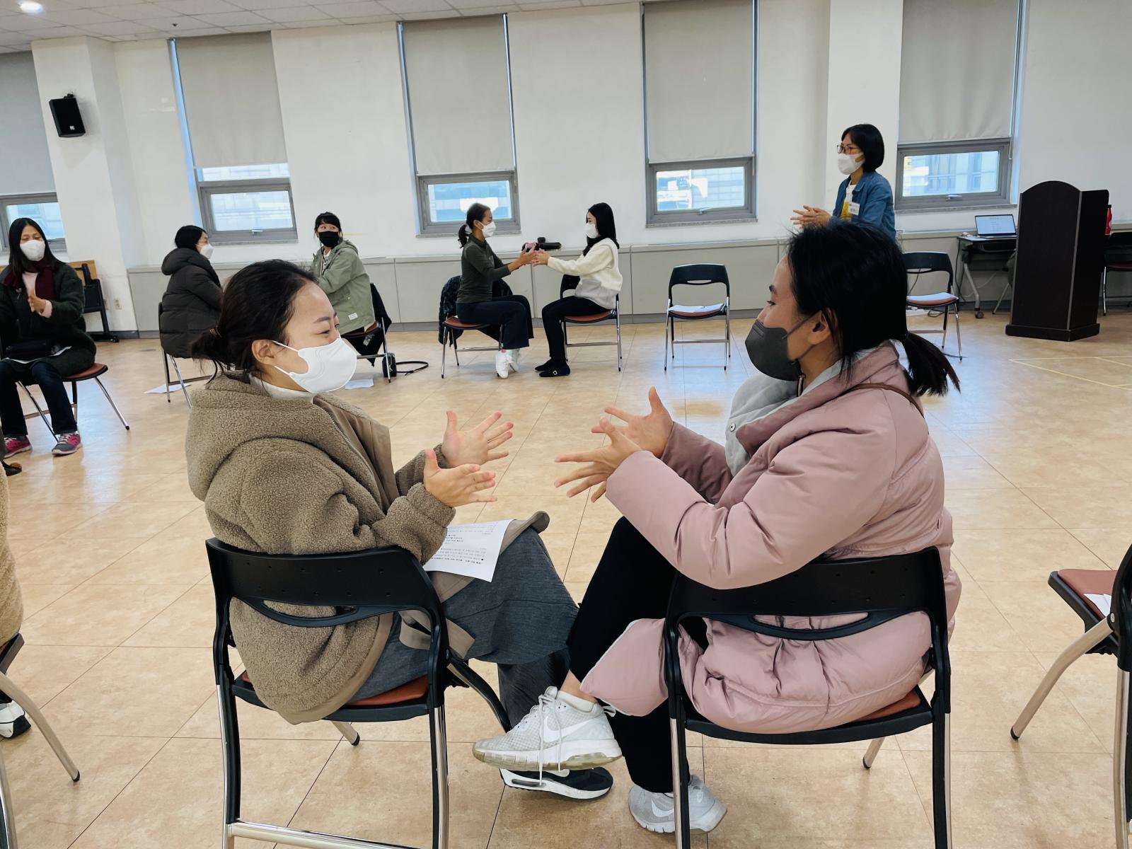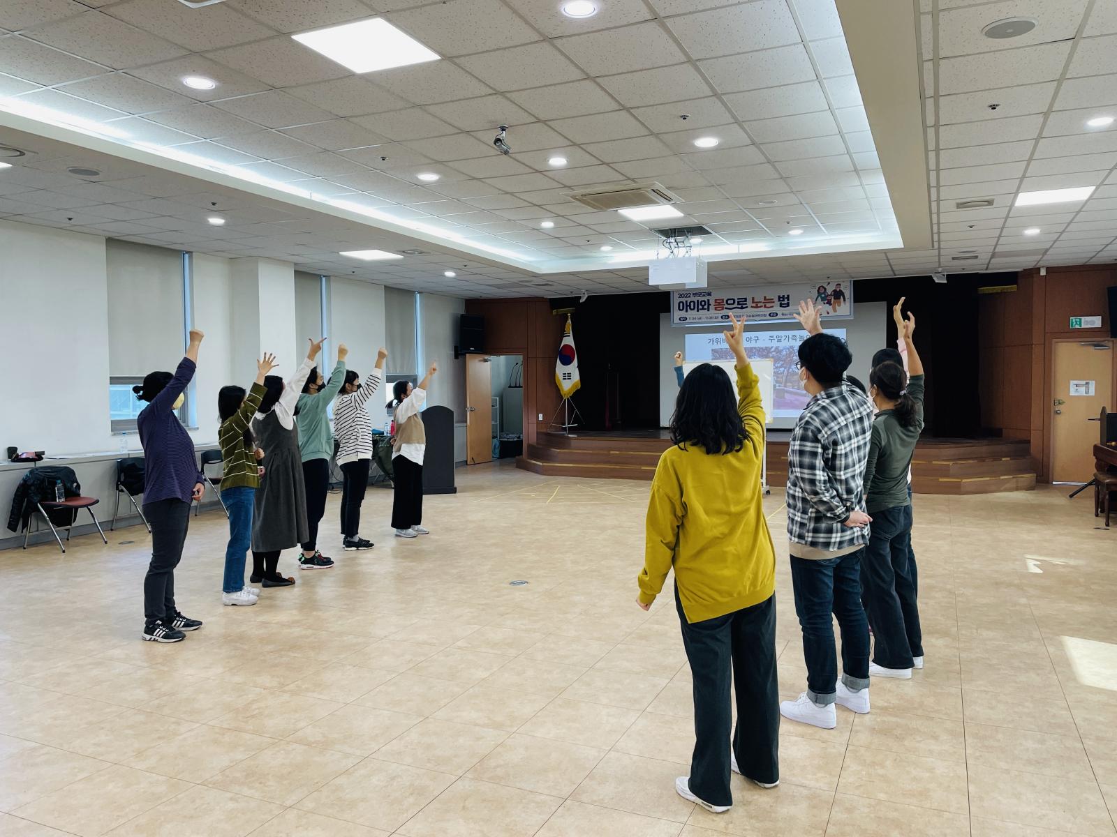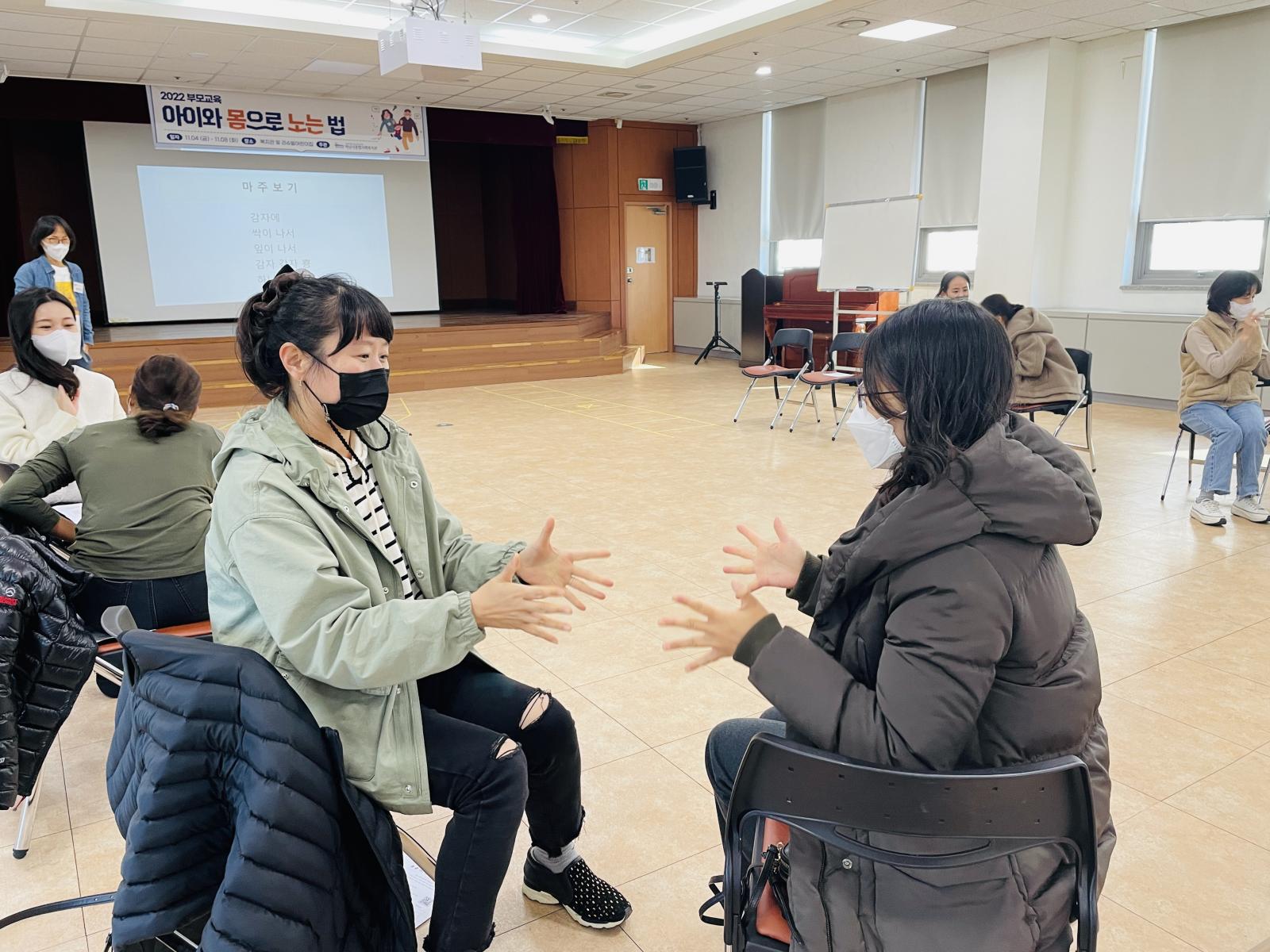 놀 준비가 끝난 아이들과 어떤 놀이를 하면 되는지 보호자분들이 직접 놀아보기로 했는데요!