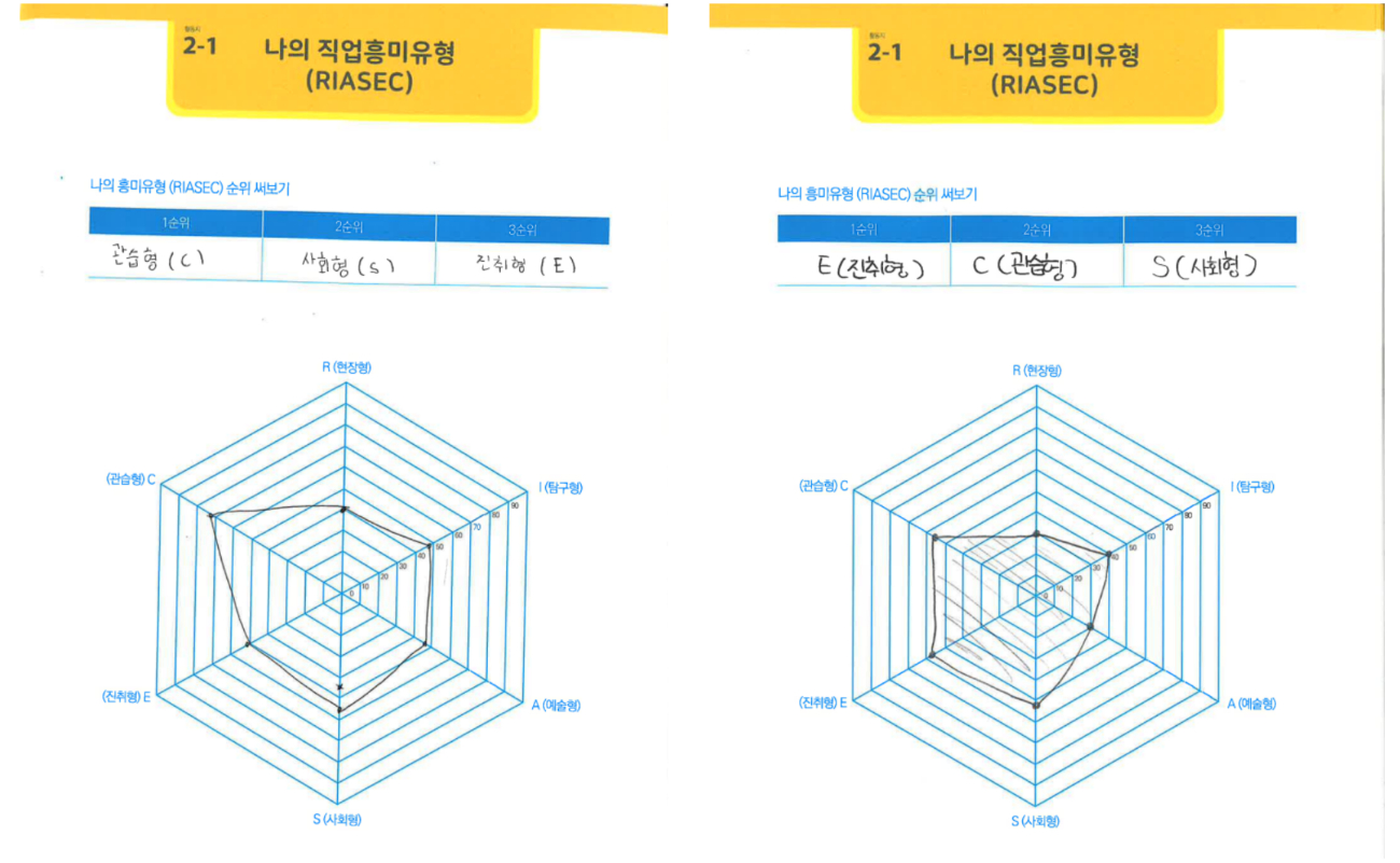 관습형, 예술형, 사회형 등 자신의 흥미 유형을 파악하고,