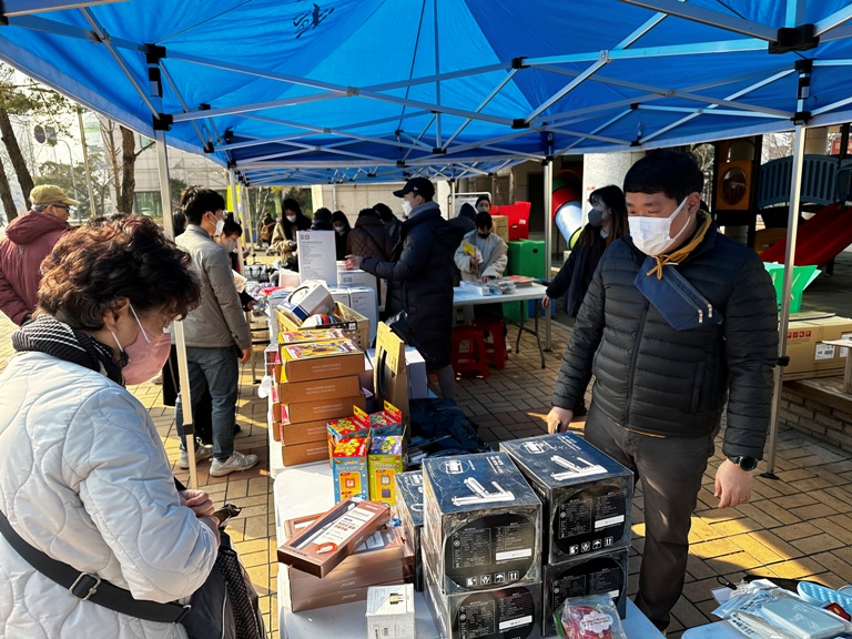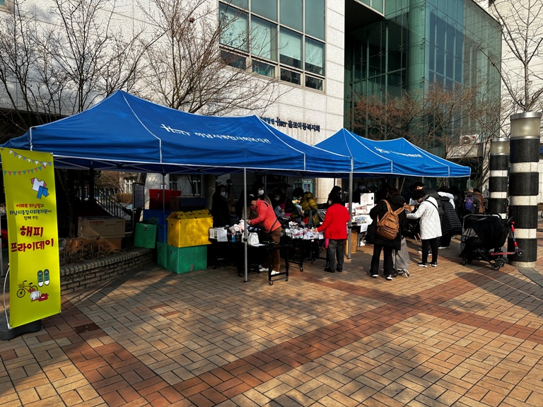 봄맞이 첫 "해피프라이데이" 진행 작성일 : 2023.02.28 | 조회수 : 5649 다가오는 봄을 맞이하여 2월 24일 금요일 복지관 놀이터 앞에서 해피프라이데이를 진행하였습니다.꽤 쌀쌀한 날씨였음에도 많은 지역주민들이 방문하여 따뜻함을 느끼는 시간이었습니다.금번 행사가 진행될 수 있도록 물품을 기증해주신 "이마트 하남점" 에 깊은 감사를 드립니다.