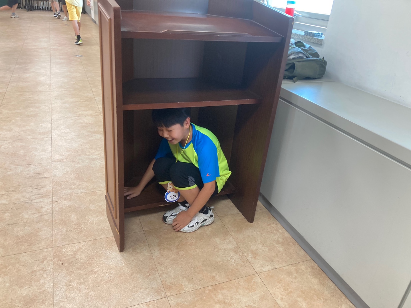 "선생님 저 여기 숨은거 비밀이에요 비밀!! 쉿!!"