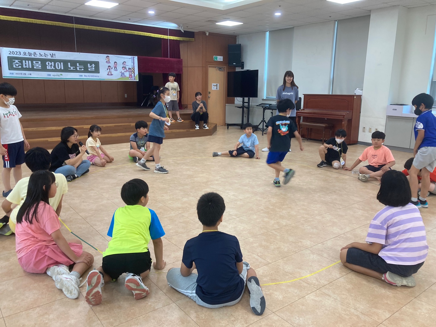 한 번도 앉거나 쉬지 않고 쉼없이 뛰어다니는 놀이기획단 친구들!