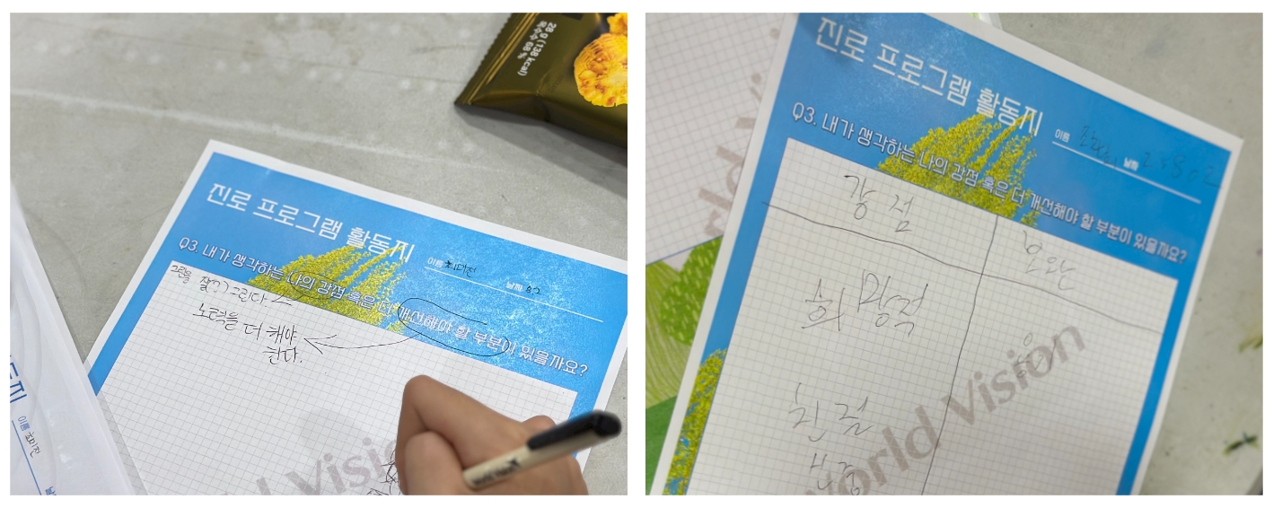 활동지에 직접 작성해본 뒤, 친구들과 함께 공유했어요.