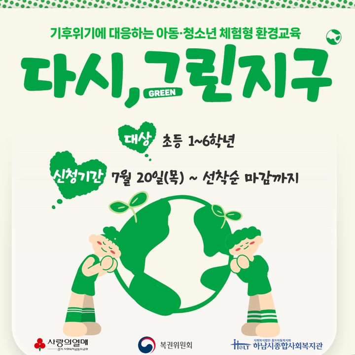 안녕하세요. 하남시종합사회복지관입니다. 올해로 세 번째 진행하게 된 ‘다시,그린(green)지구’ 소식으로 찾아왔습니다!