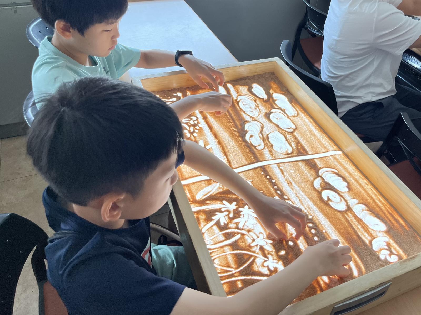 자연물인 모래를 이용한 샌드아트 공연 관람과 체험을 모두 할 수 있는 시간이에요~