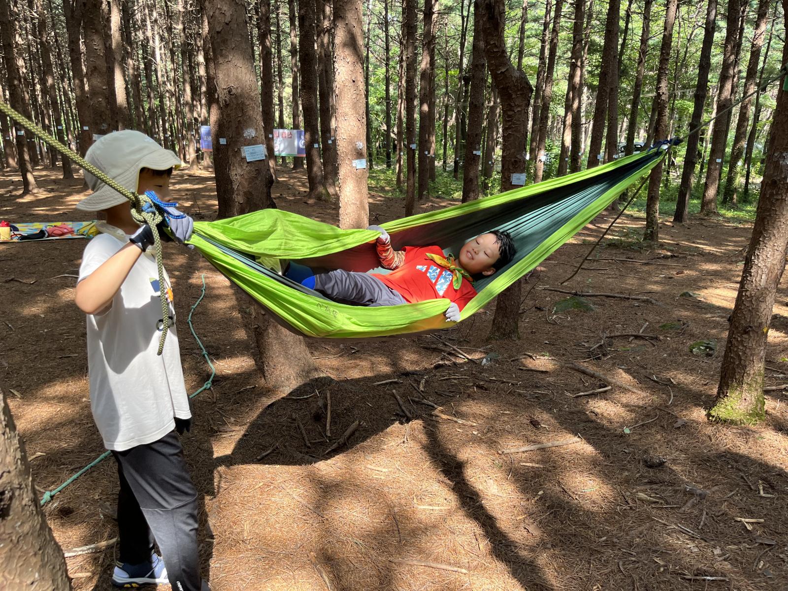 밧줄로 철봉놀이, 해먹, 그네타기 등등 다양하고 신나게 즐기는 시간이었습니다!
