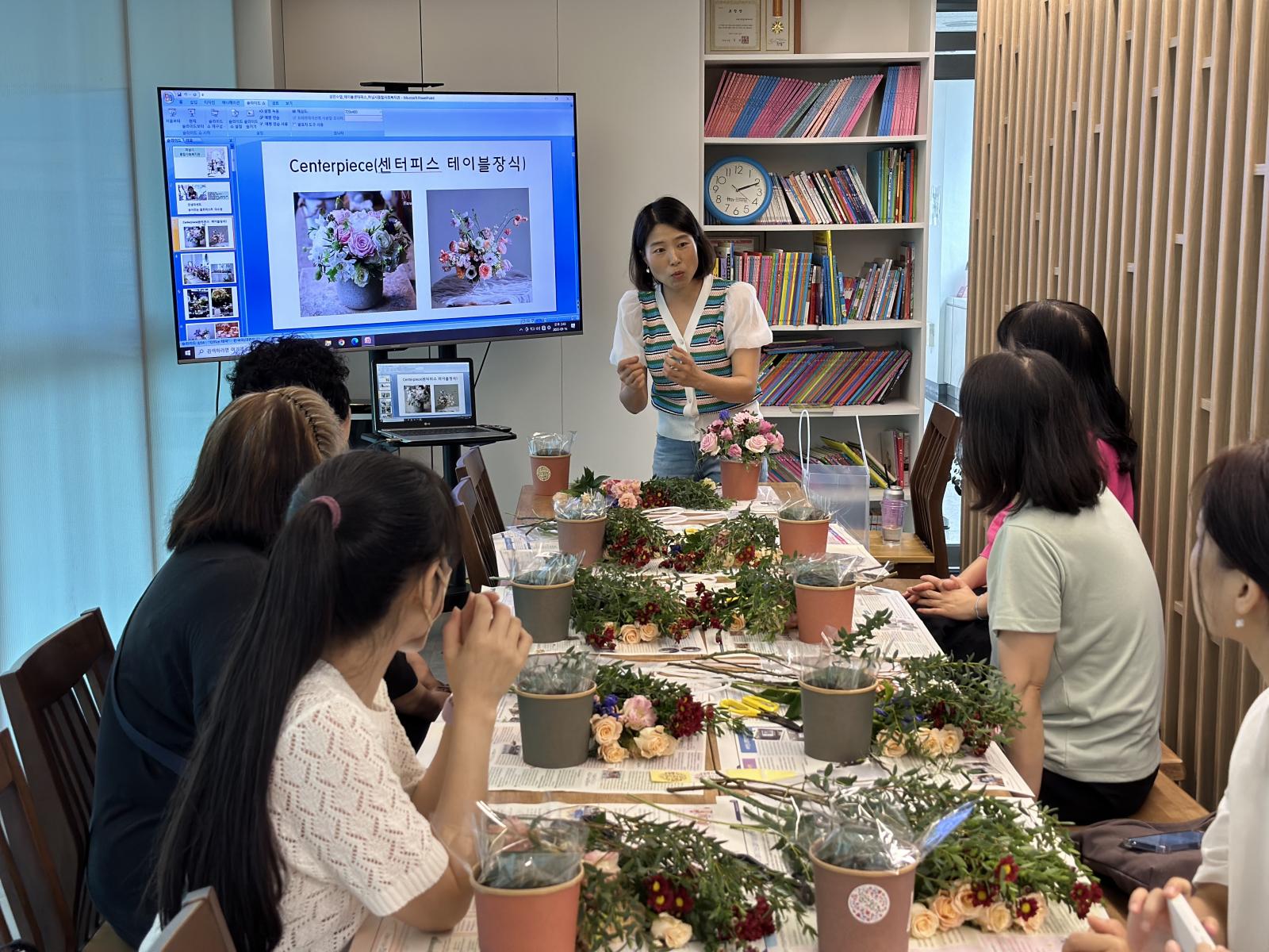 먼저 꽃의 종류와 화분 꽃꽂이 방법을 배운 뒤,