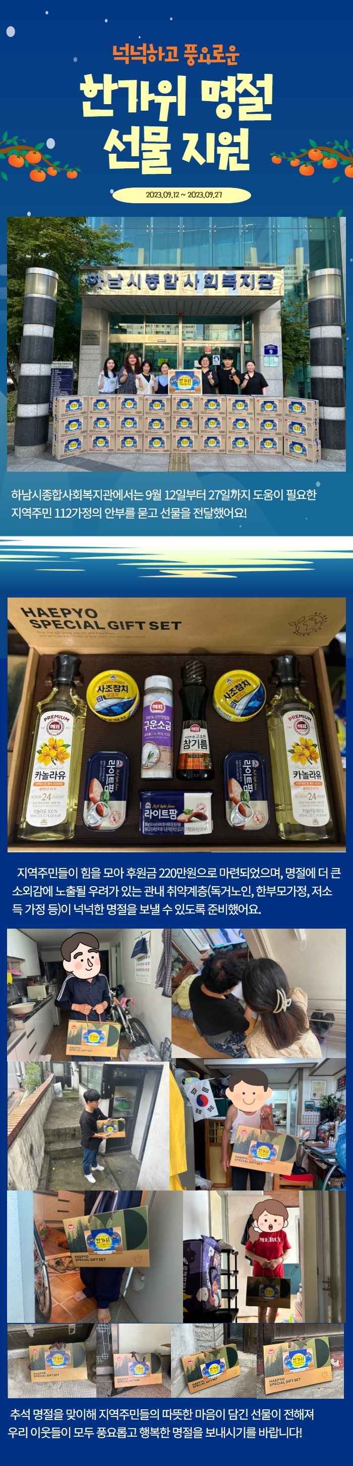 2023 하남먹거리 '식사는 하셨어요?' 19회기 2023-10-05 조회수 3,176 2023 하남먹거리 '식사는 하셨어요?' 18회기 2023-09-27 조회수 3,099 오늘은 노는 날! "친구랑 같이 노는 날" 진행 (1회기) 2023-09-27 조회수 4,590 신명나는 한가위 한마당 문화공연 진행 2023-09-27 조회수 5,188 하남우리소리예술단 아동한복지원 2023-09-27 조회수 3,839 2023 한가위 명절선물 지원 2023-09-27 조회수 3,965 하남라이온스클럽 백미 후원 전달 2023-09-26 조회수 4,690 2023 하남먹거리 '식사는 하셨어요?'(조리봉사 & 배분봉사) 6회기 2023-09-21 조회수 2,554 2023년 마음성장 아동미술치료프로그램(하반기) 2023-09-21 조회수 4,292