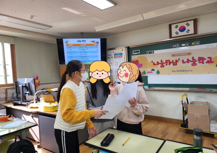 나눔에 대한 교육과 그에 맞는 활동을 진행하는 프로그램이에요.