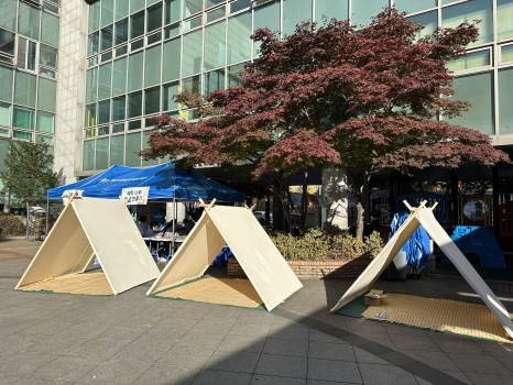 텐트의 지붕 바깥에는 예술 캠프에 참여한