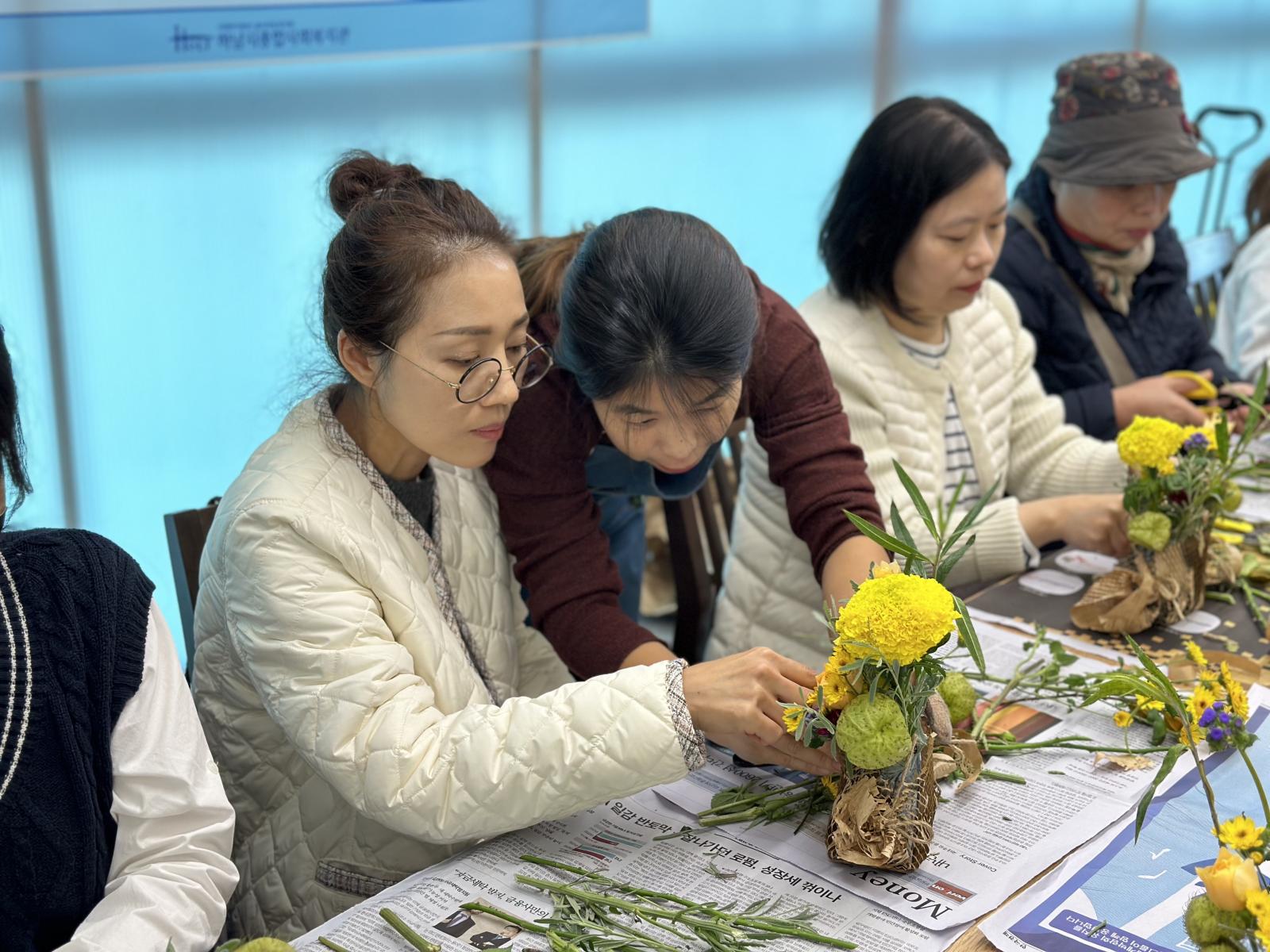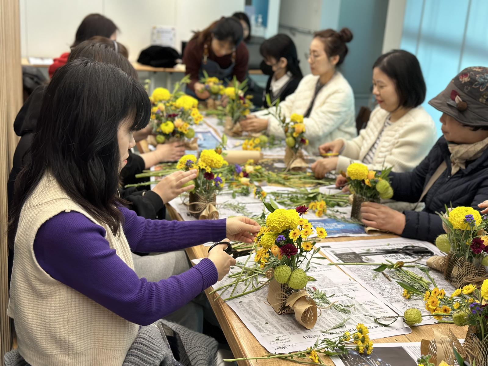 꽃꽂이를 하며 자녀들 학교 얘기, 입시 정보 공유 등